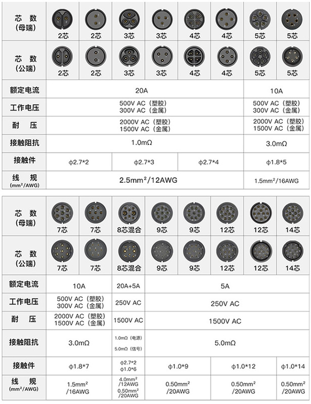 - Specification: LP20 type 7-core male plug