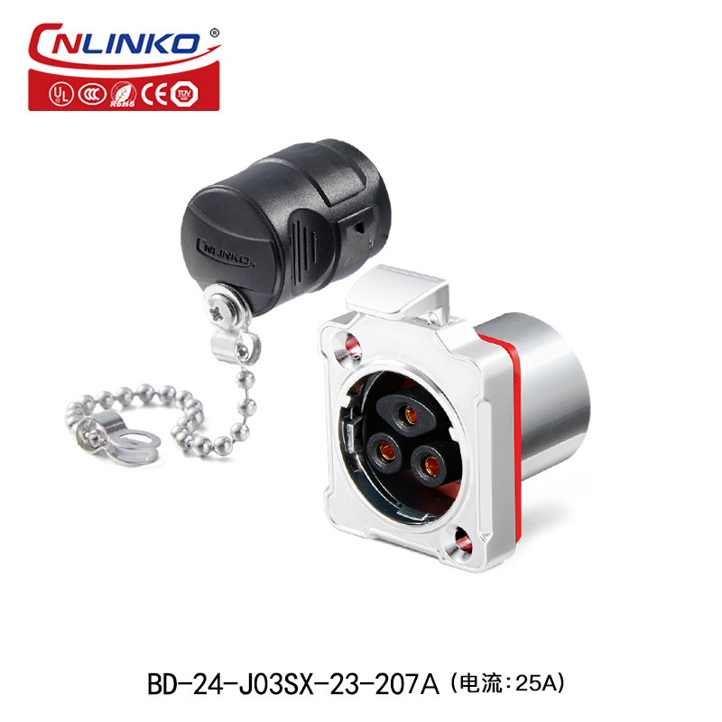 - Specification: BD24 Type 3-core Metal Flange Male Socket 25A