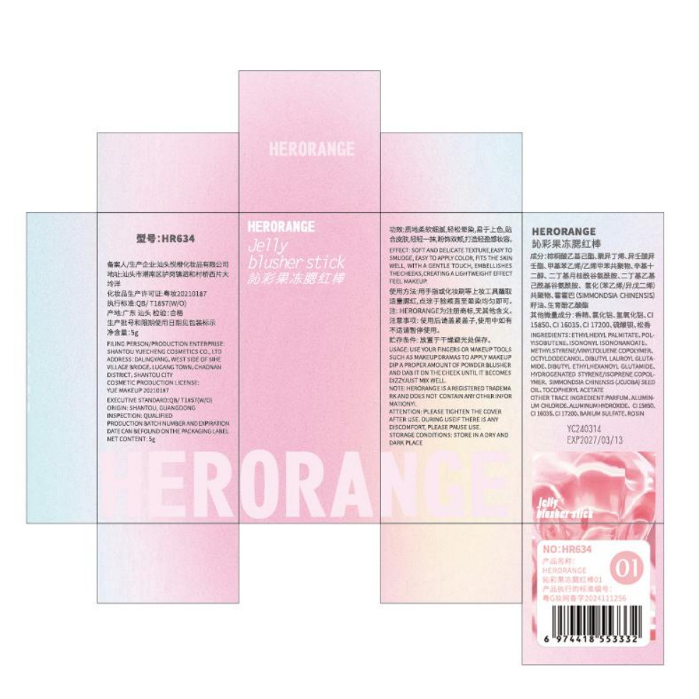 - 產品名稱:HERORANGE訫彩果凍腮紅棒