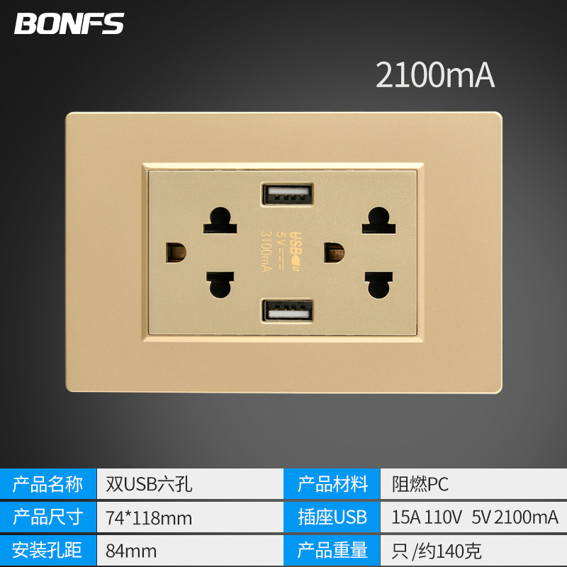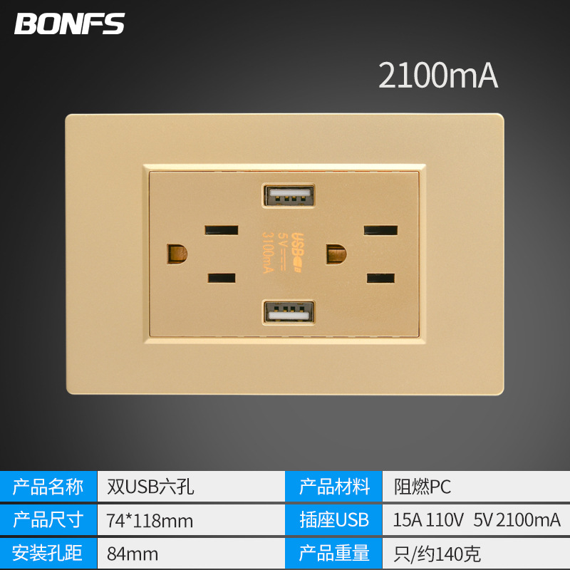 - Model: American Gold Six Holes Dual USB