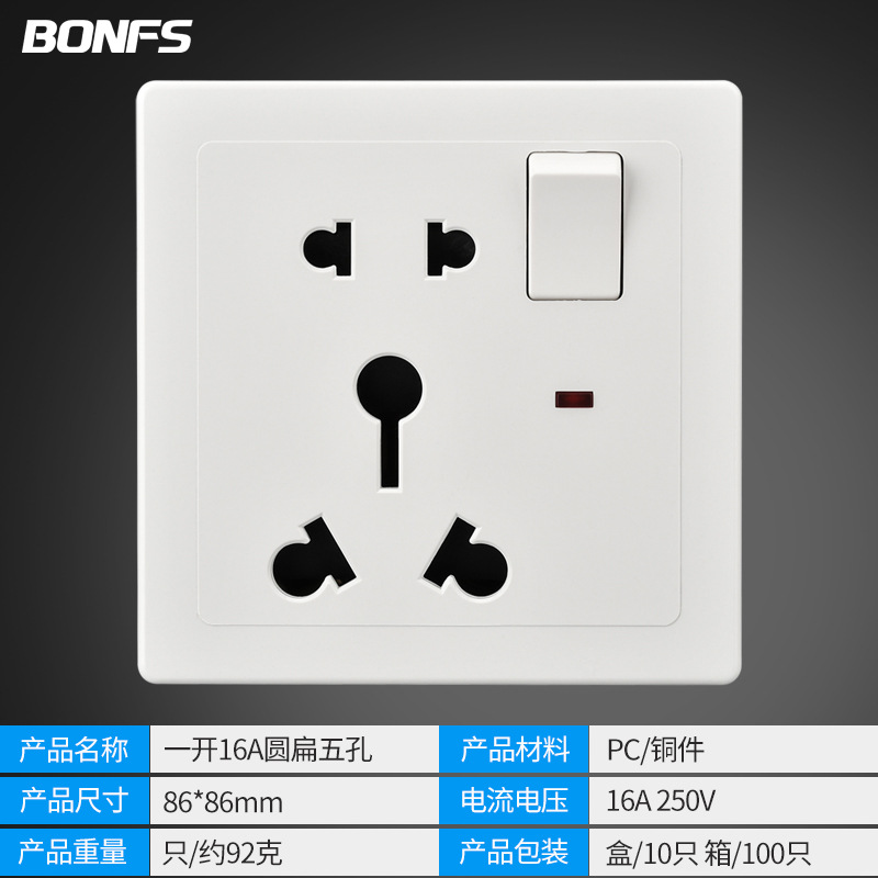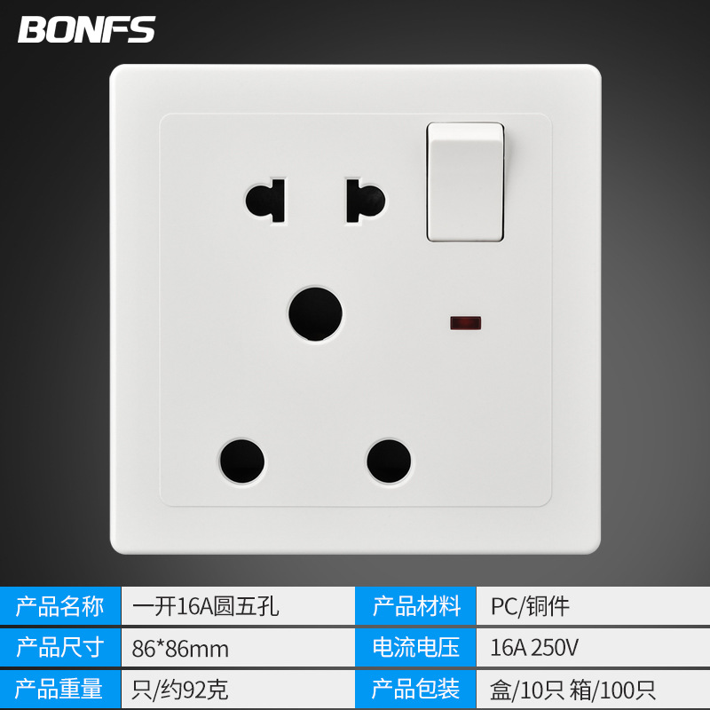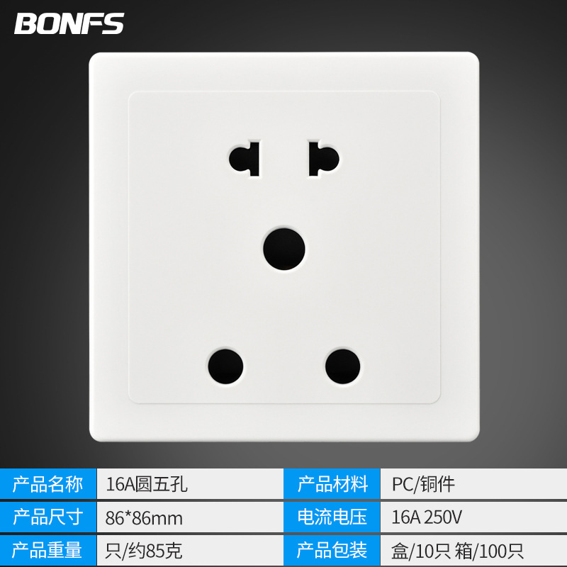 - Model: Single Pole 16A Round Five Holes