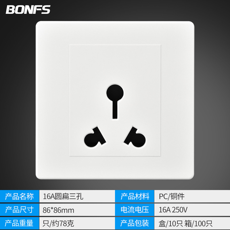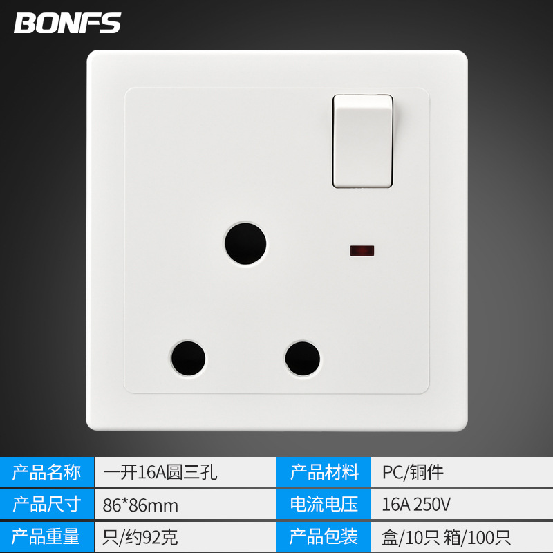 - Model: Single Pole 16A Round Flat Three Holes
