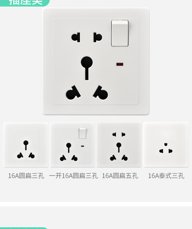 - Model: Single Pole 16A Round Flat Five Holes