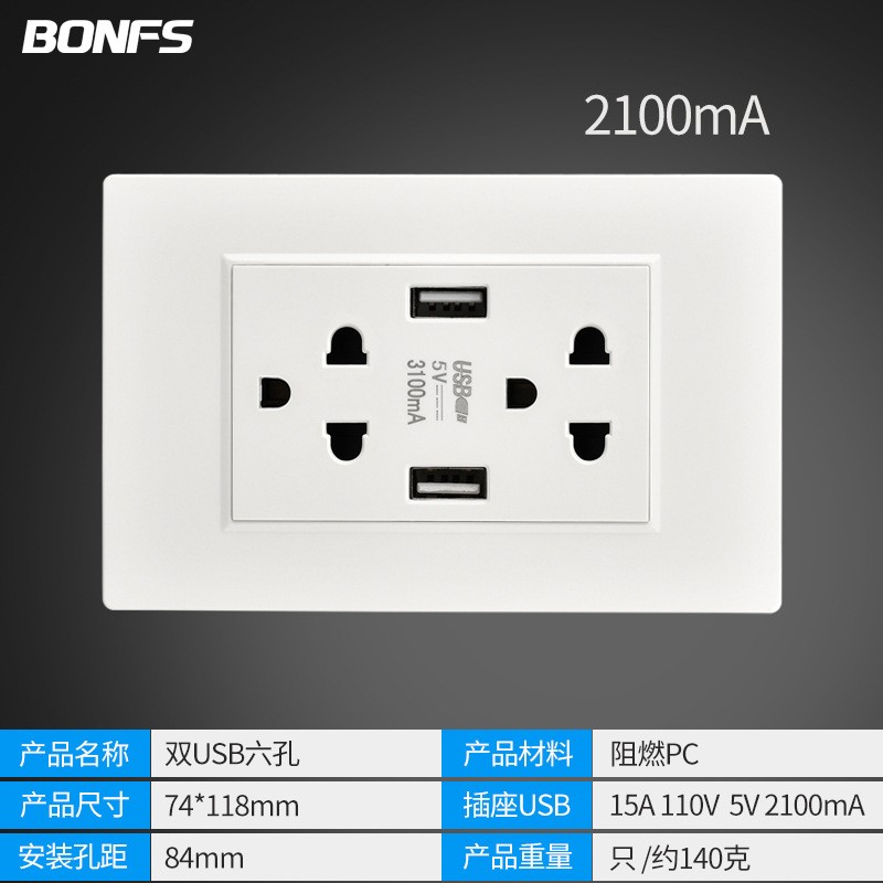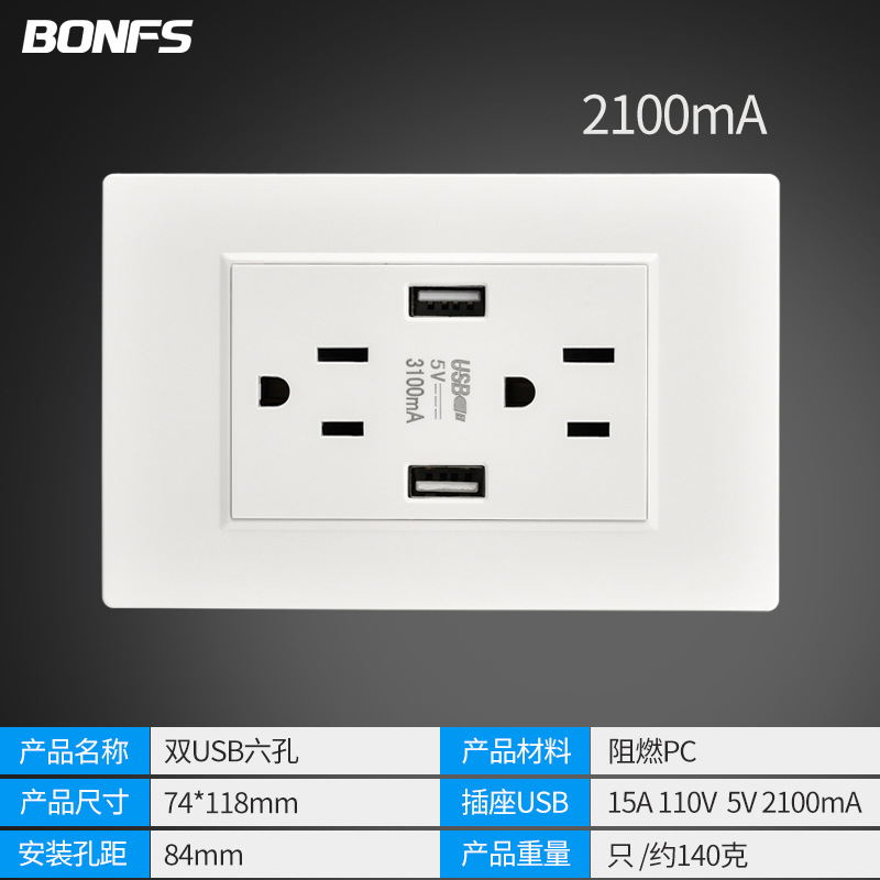 - Model: American White Six Holes Dual USB
