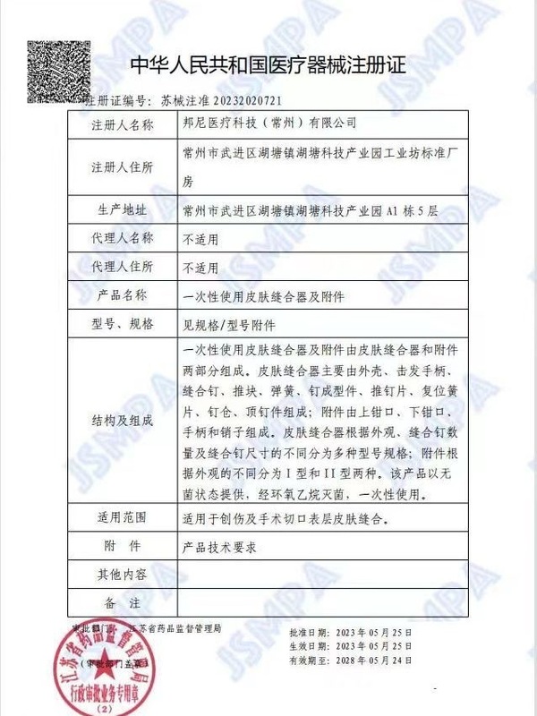 - Drug (Device) Approval Number:苏械注准20232020721