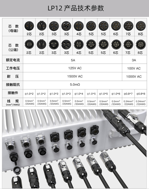 - Specification: LP12 Type 4-core Plastic Male Socket
