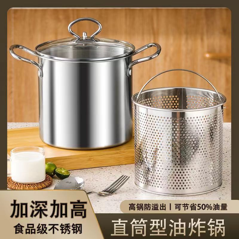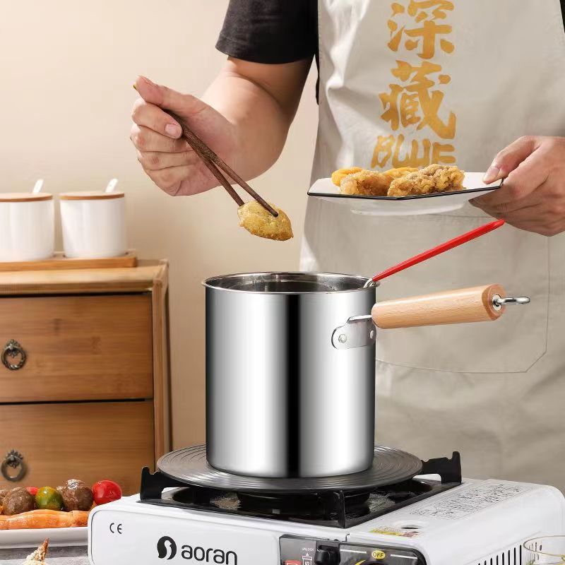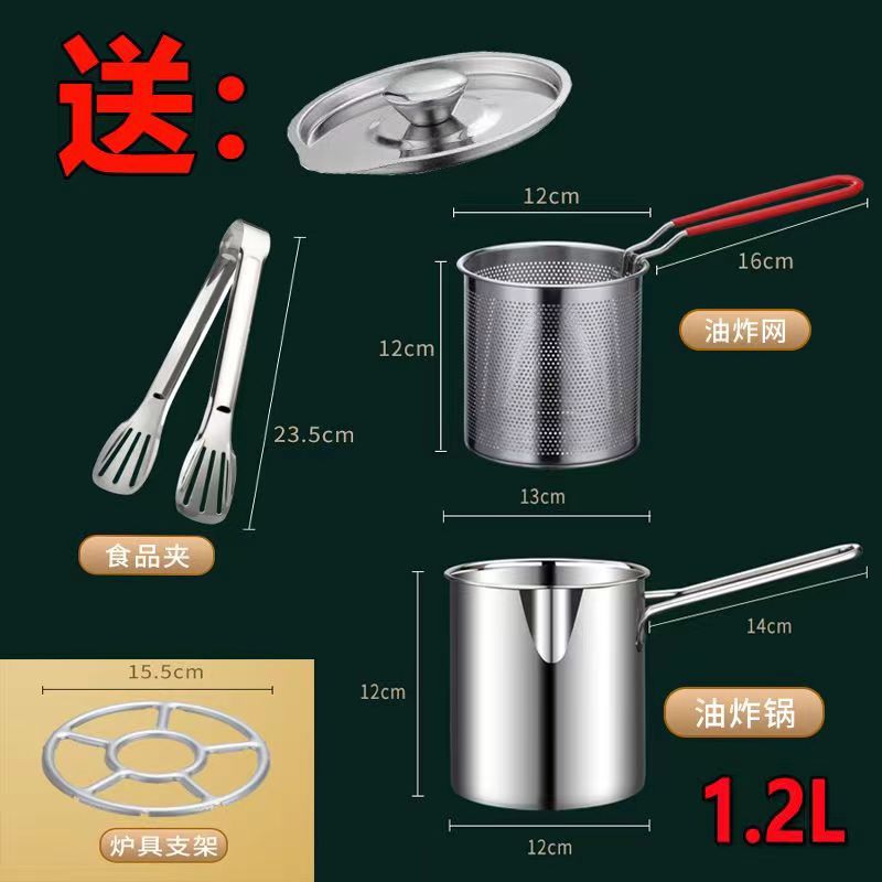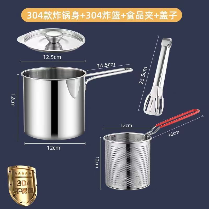 - 規格:304加厚油炸鍋+夾子+爐架【單柄線條】