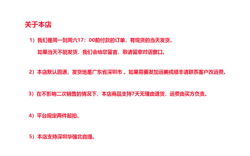 Delivery time: For products in stock, they will be shipped within 3 working days (excluding holidays) after you place your order and make payment. You will receive our notification after shipment.