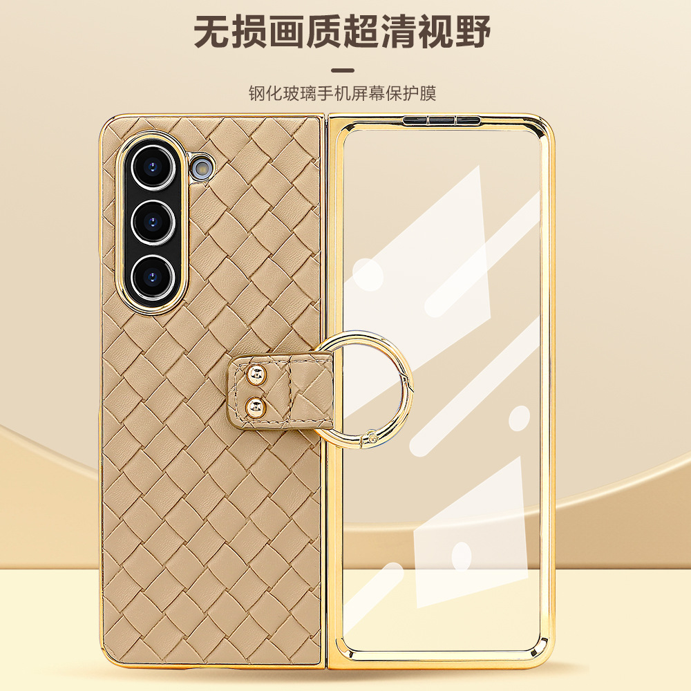 - 材質:tpu+pc+編織皮紋+電鍍邊框指環+鋼化膜屏幕保護膜