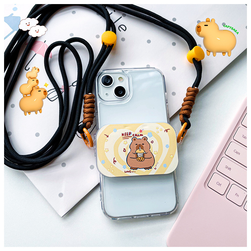- 規格:翻蓋手機夾-喝奶茶水豚+掛繩