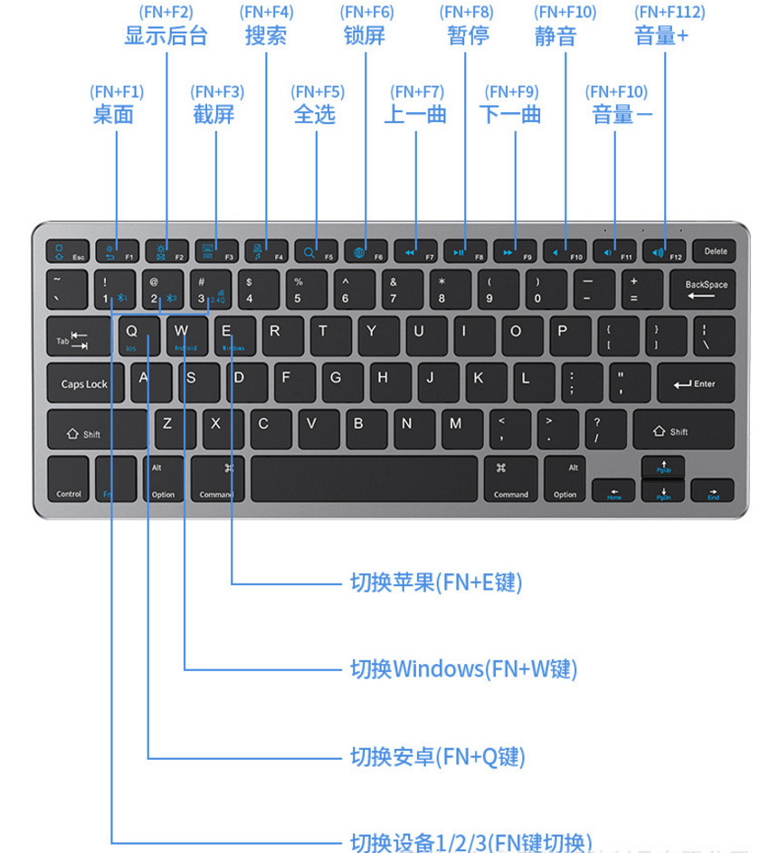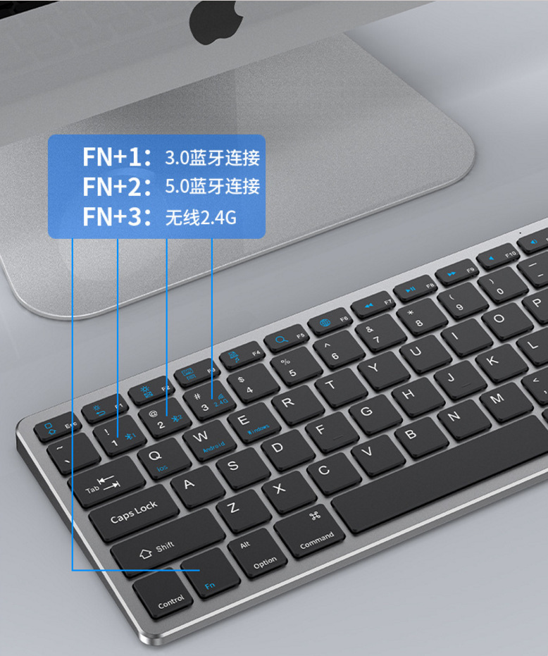 - 包裝清單:鍵盤,USB,充電線,說明書,彩盒