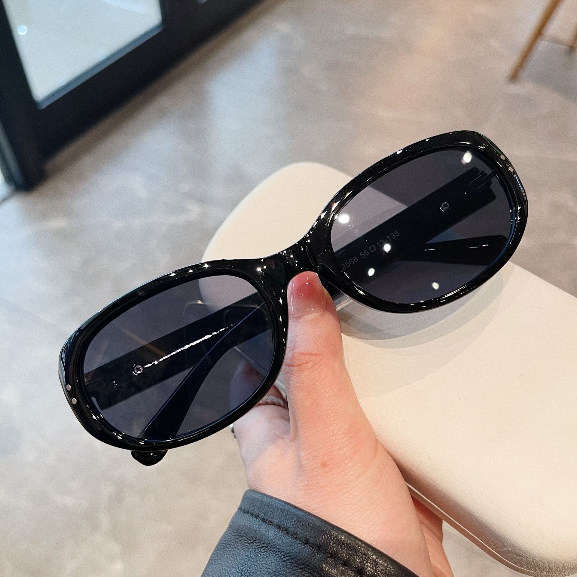 - Glasses style: oval frame