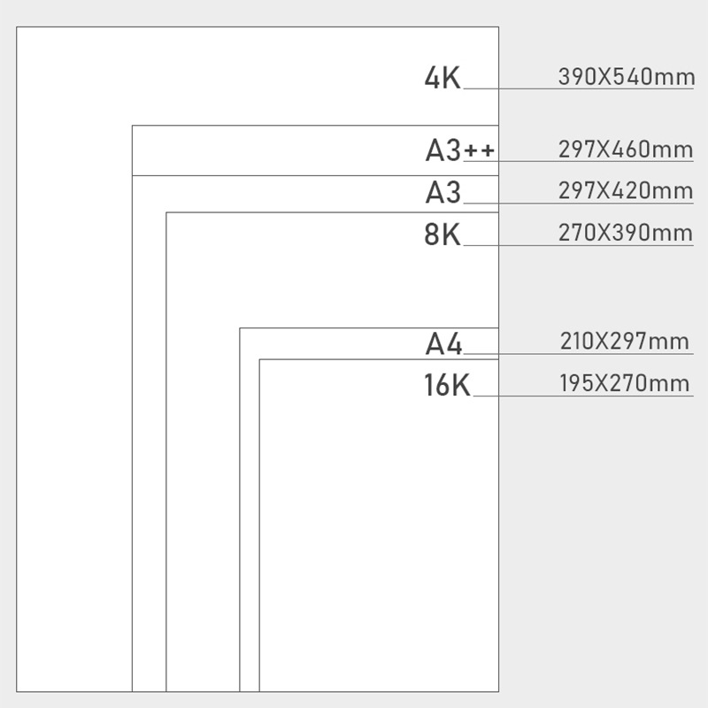 - Length: 16K/A4/8K/A3/A3+/4K