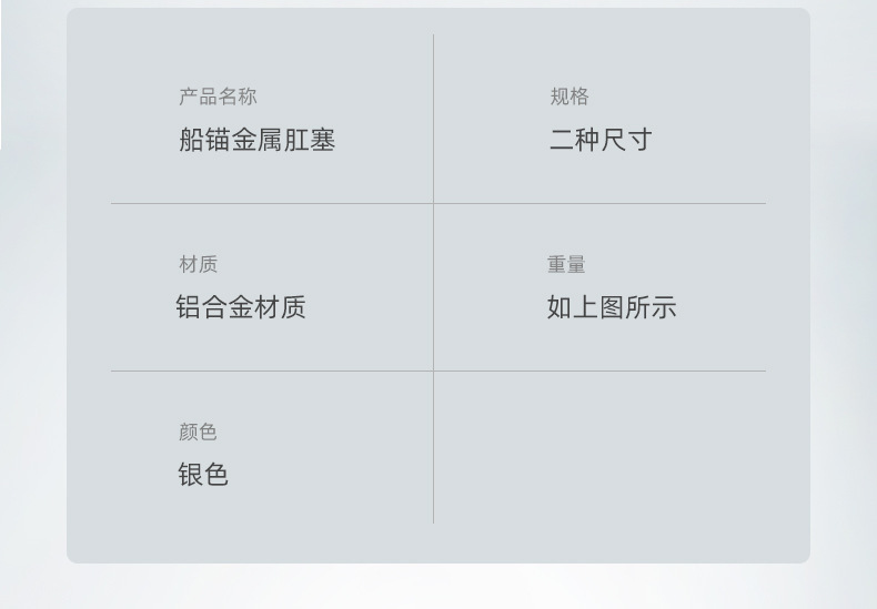 - 產品名稱:金屬船錨陽具肛塞