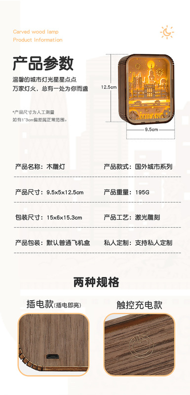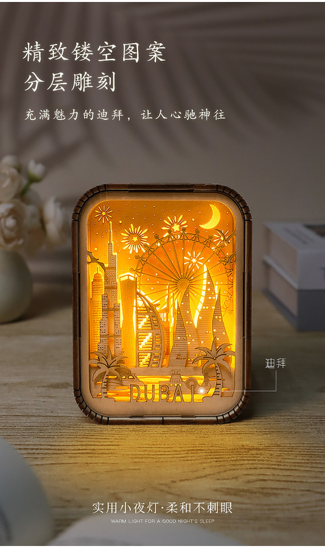 - Model: Urban series wood carving lamp
