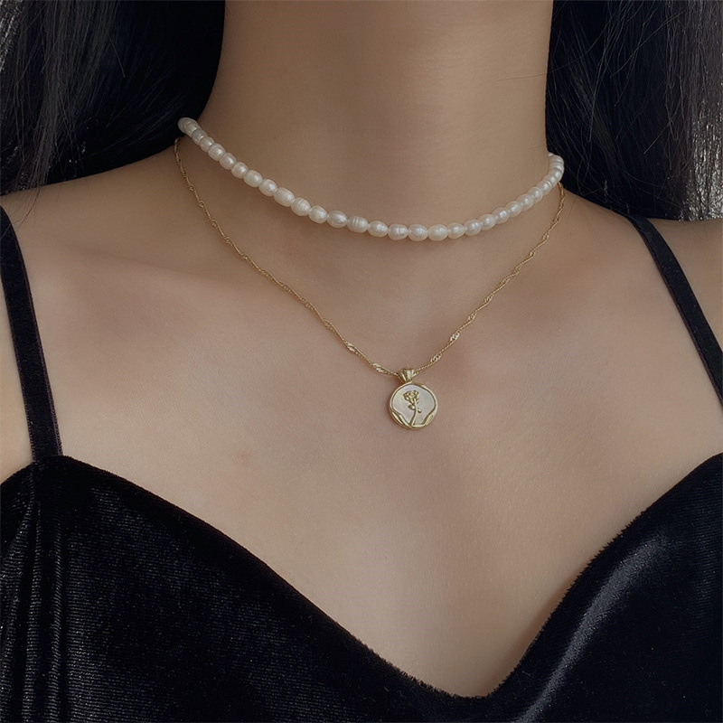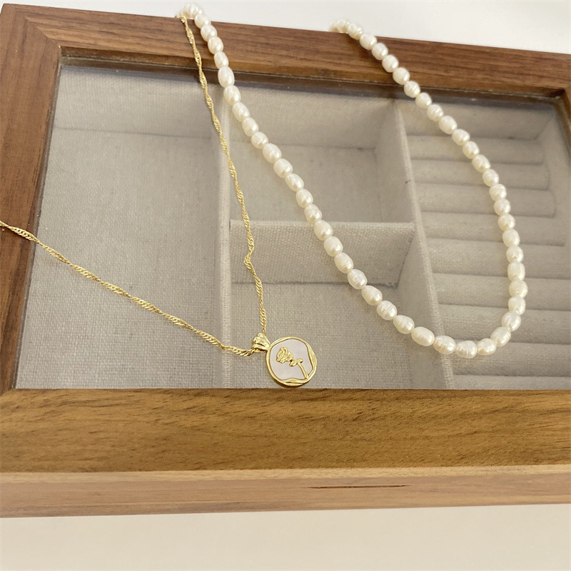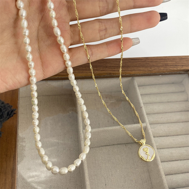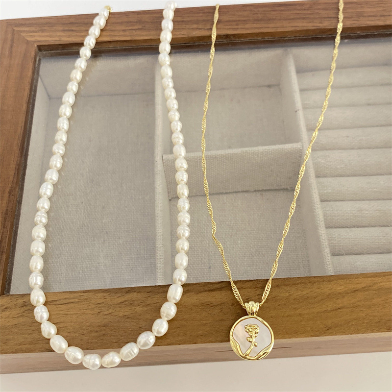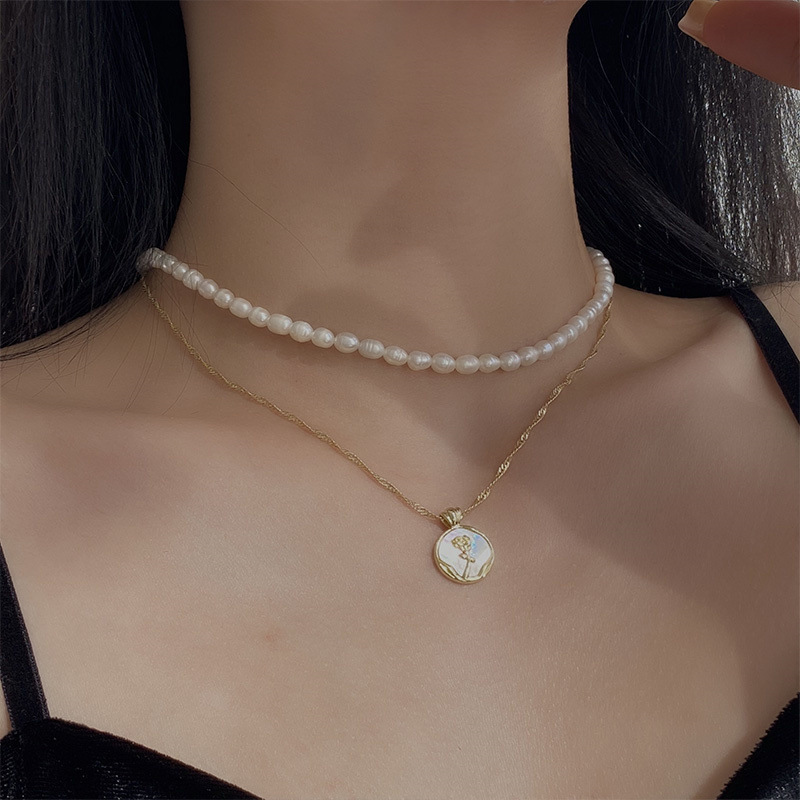 - 樣式:天然貝殼玫瑰花珍珠項鍊