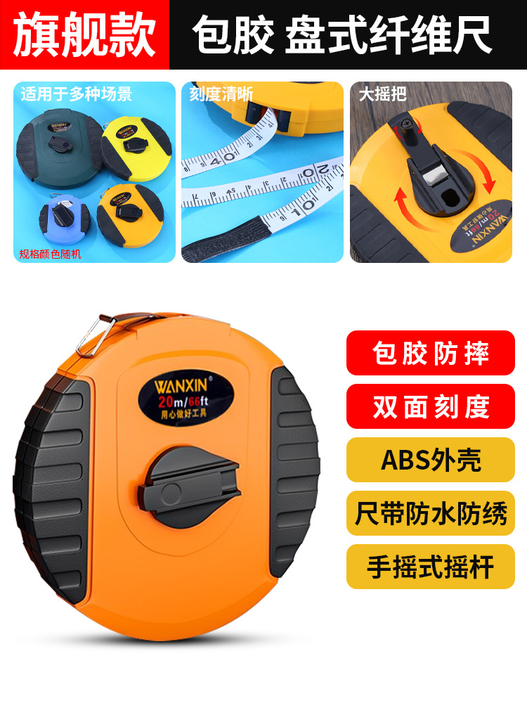 - Model: Rubber Coated Shockproof Fiber Tape Measure 20m