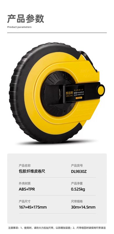 - Model: Rubber Coated Shockproof Fiber Tape Measure 30m