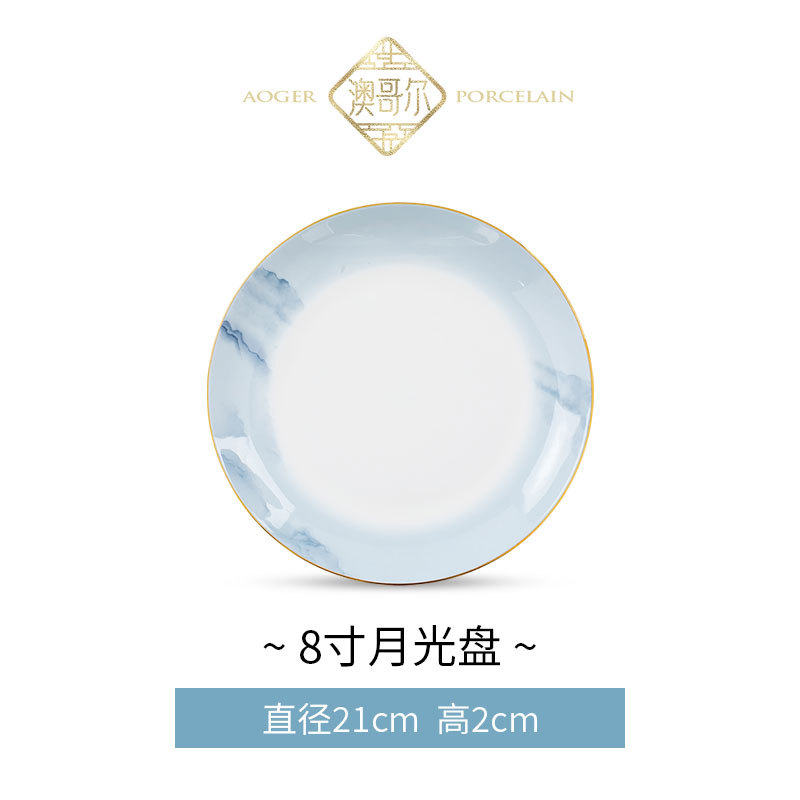 - 規格:煙雨江南8英寸月光盤手工描金