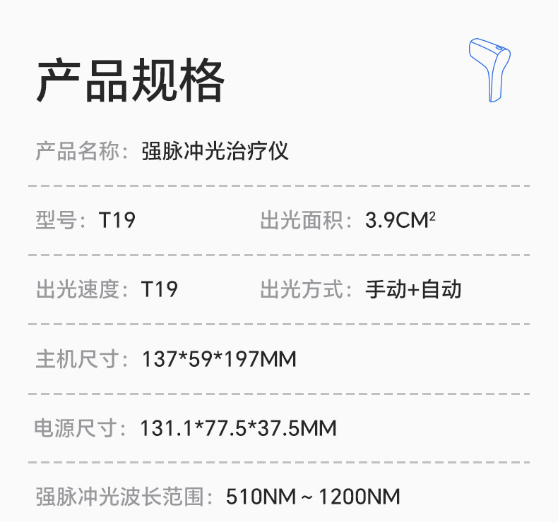 - 脫毛器波長:510~1200nm