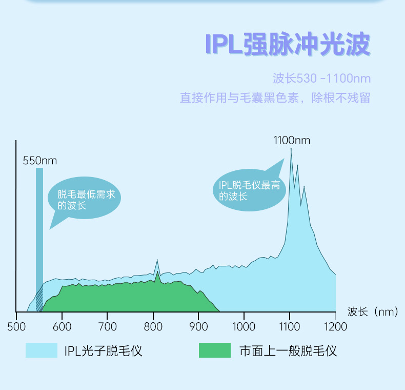 - 脫毛器波長:脫毛:530-1100nm