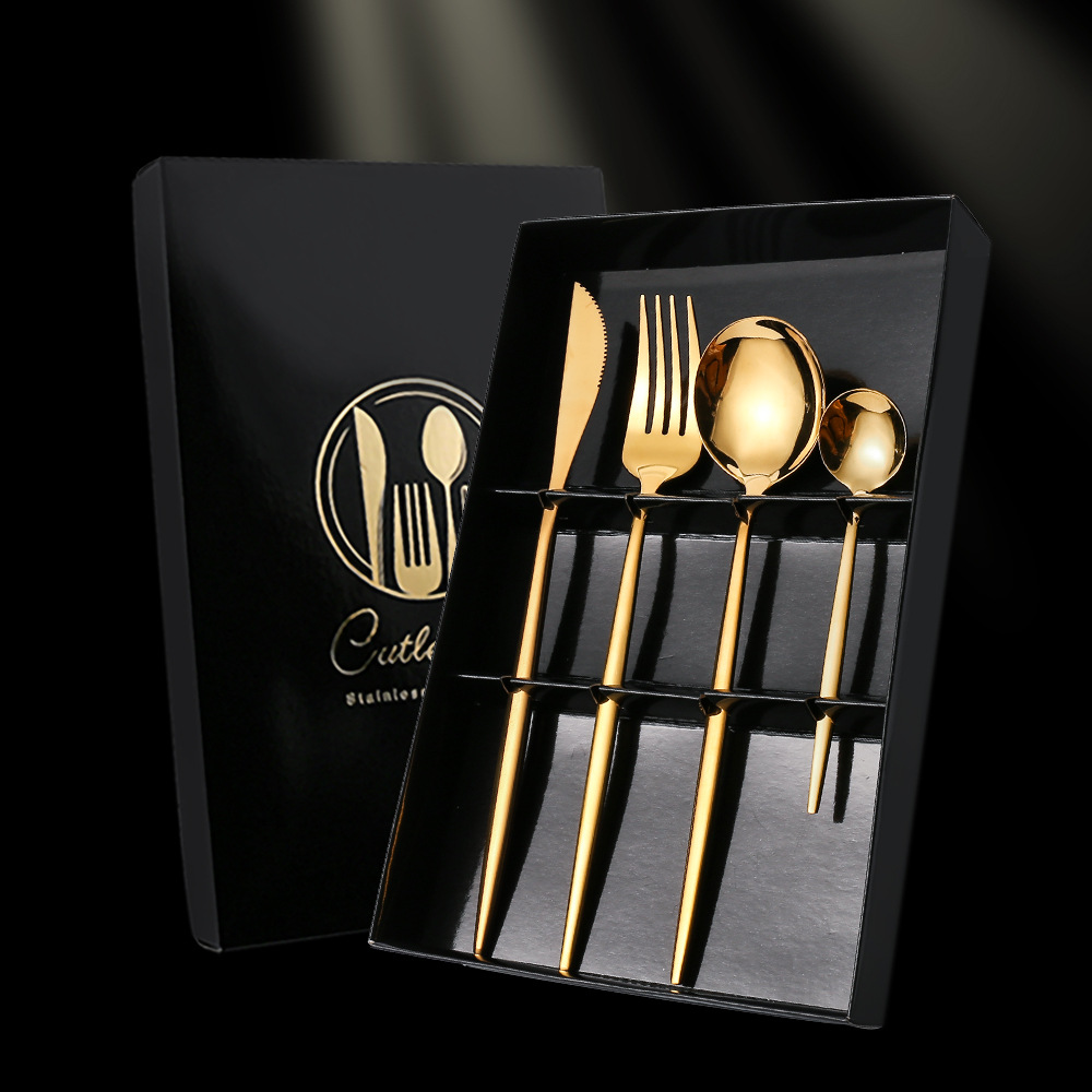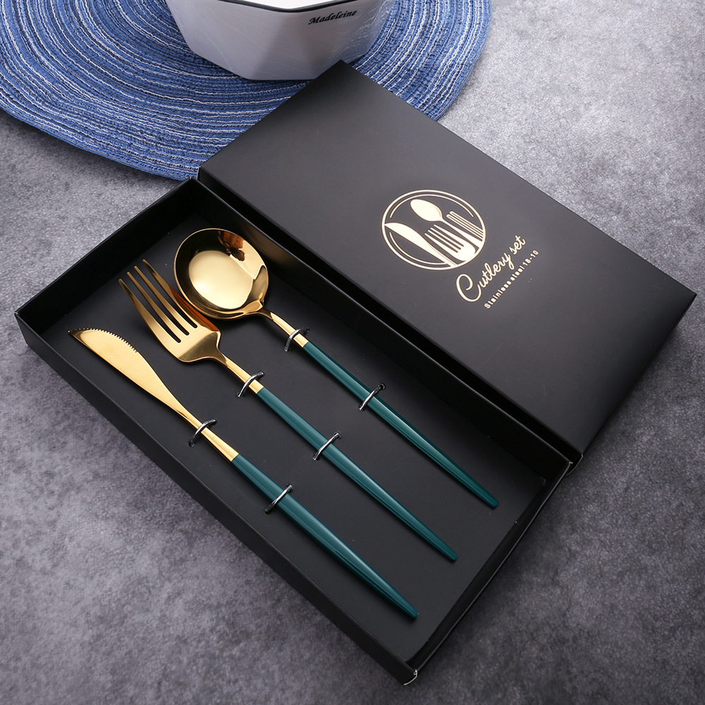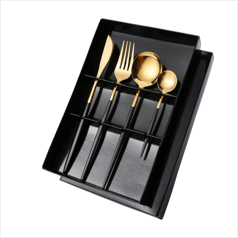 - Specifications: Black Gold Knife, Fork, Spoon Set Color Box
