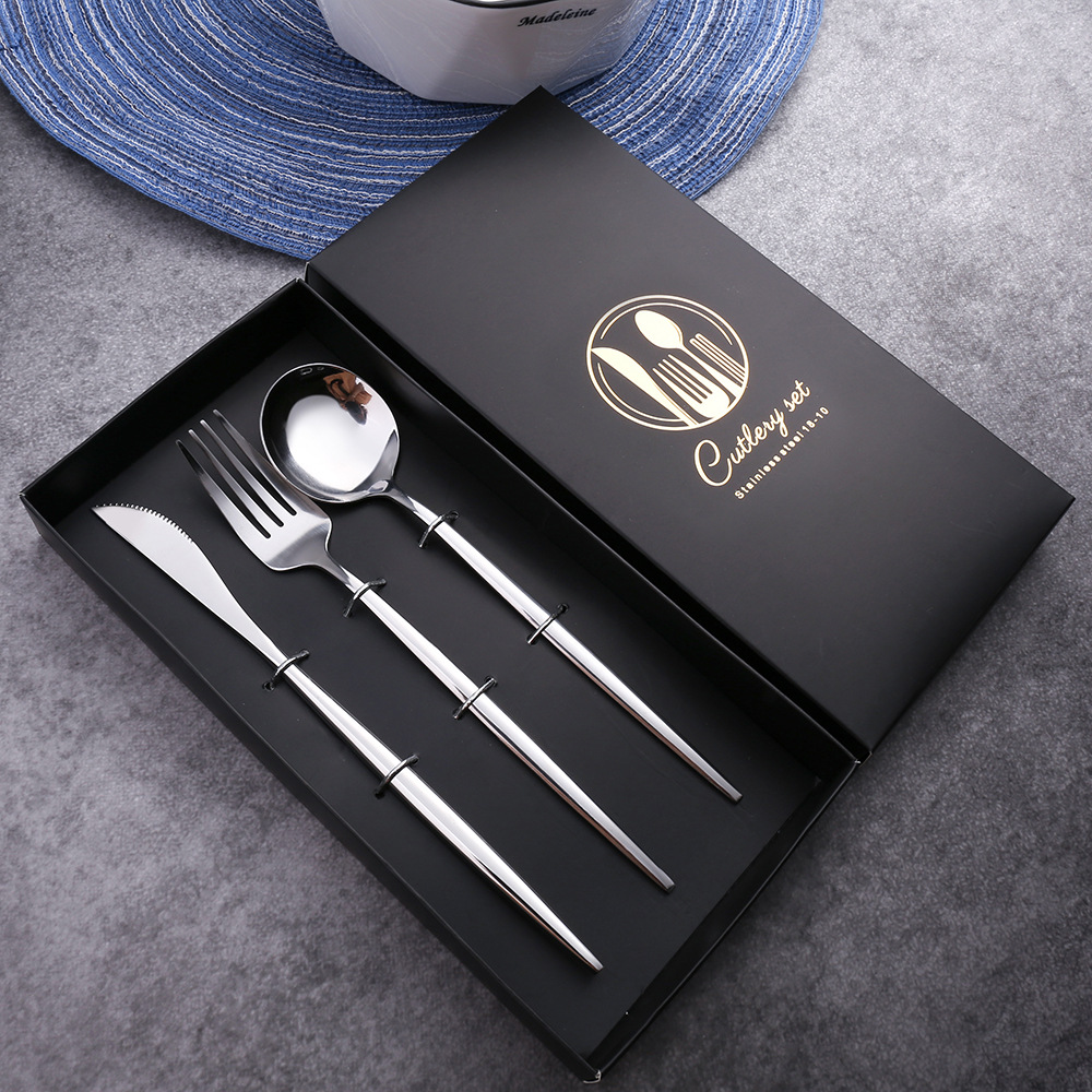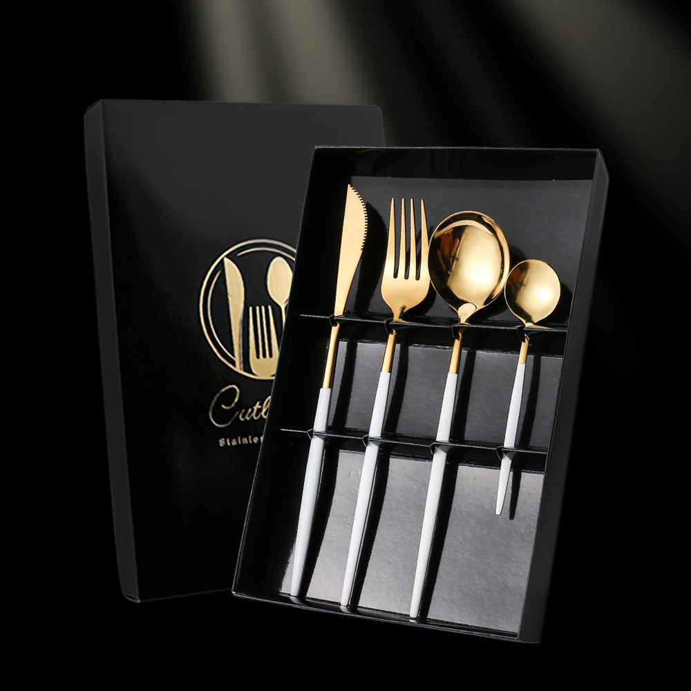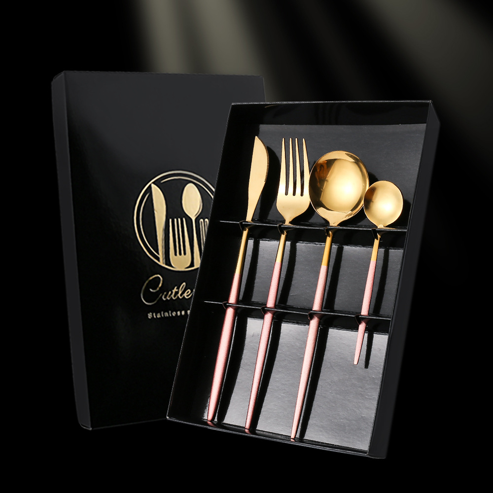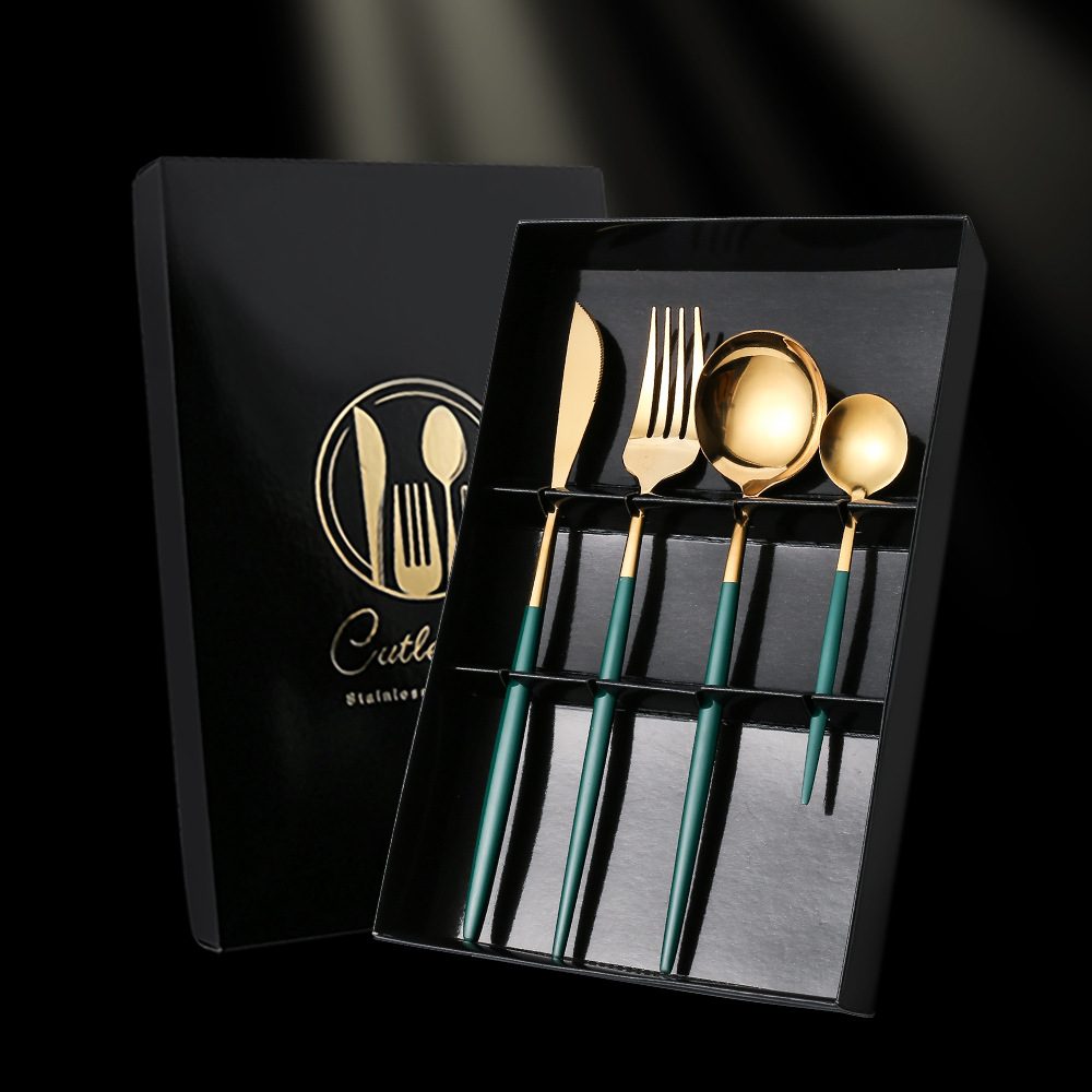 - Specifications: Black Gold Knife, Fork, Spoon Set Color Box
