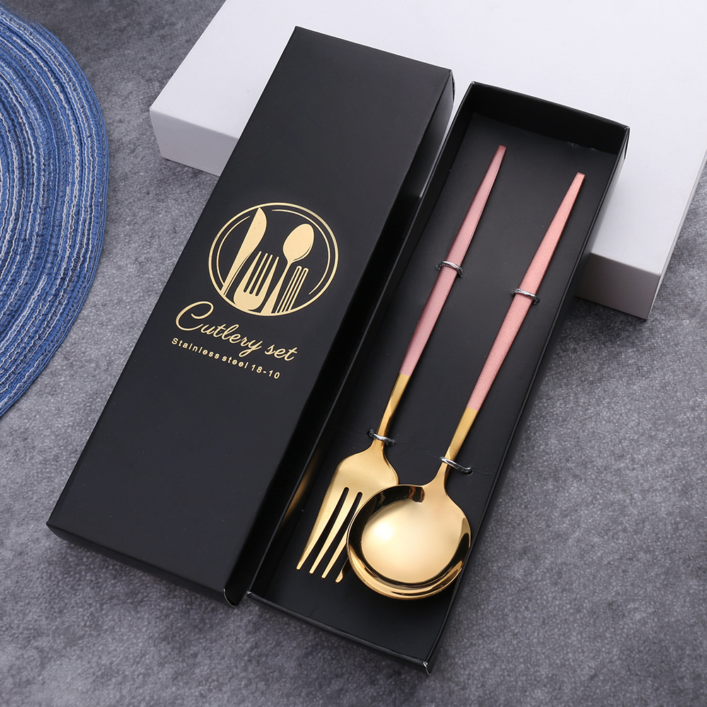 - Specifications: Pink Gold Knife, Fork, Spoon Set Color Box
