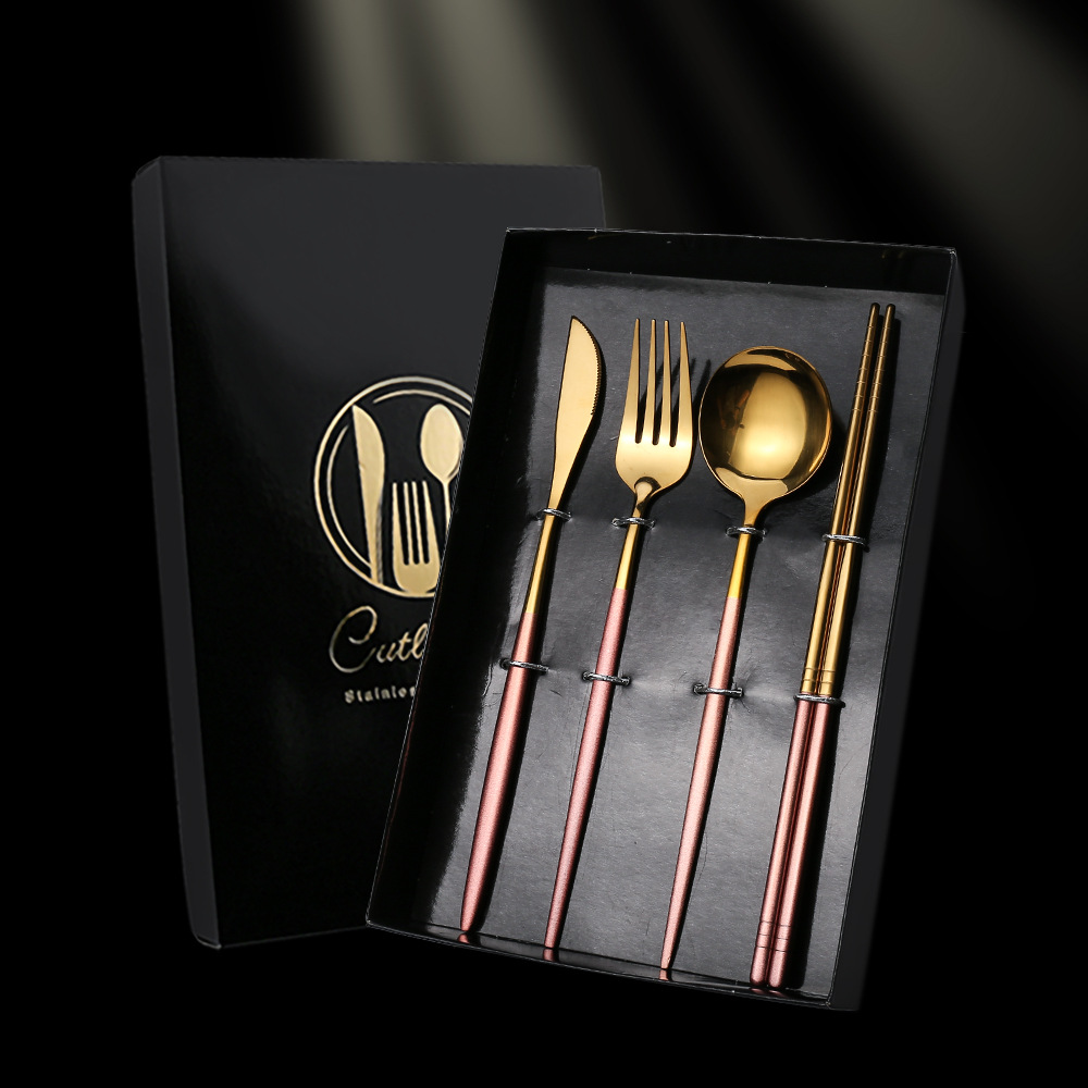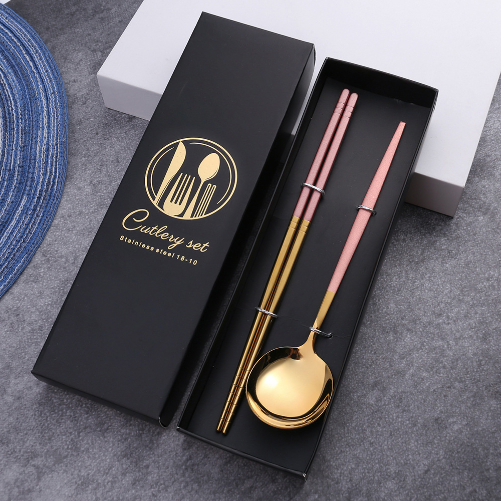 - Specifications: Pink Gold Spoon, Fork, Chopsticks Color Box