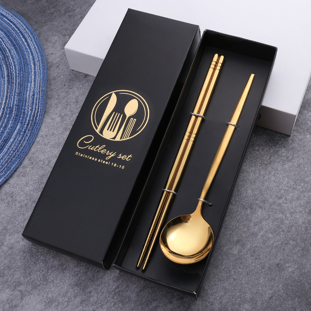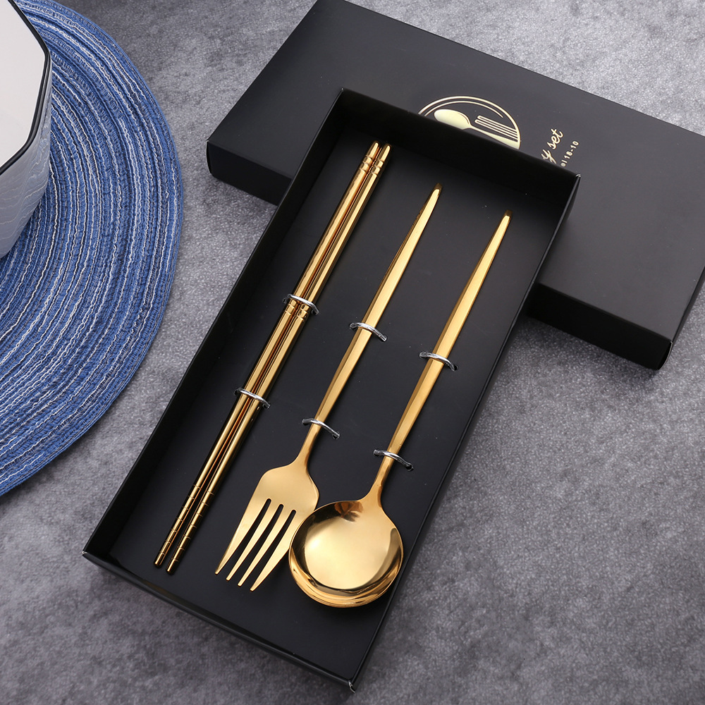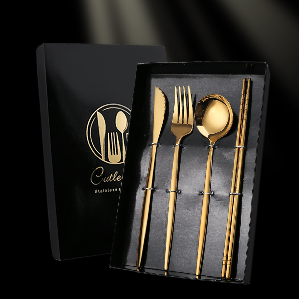 - Specifications: Titanium Gold Spoon, Fork, Chopsticks Color Box