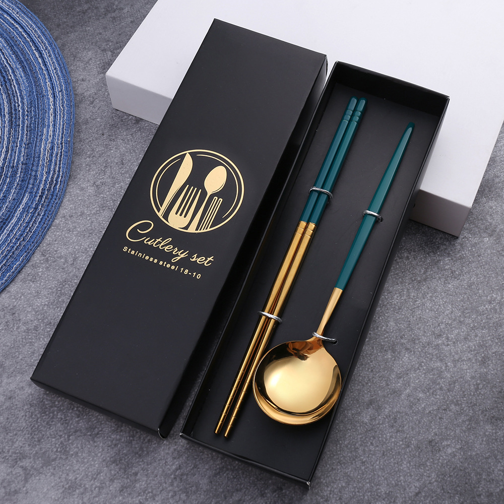 - Specifications: Peacock Green Gold Spoon, Fork, Chopsticks Color Box