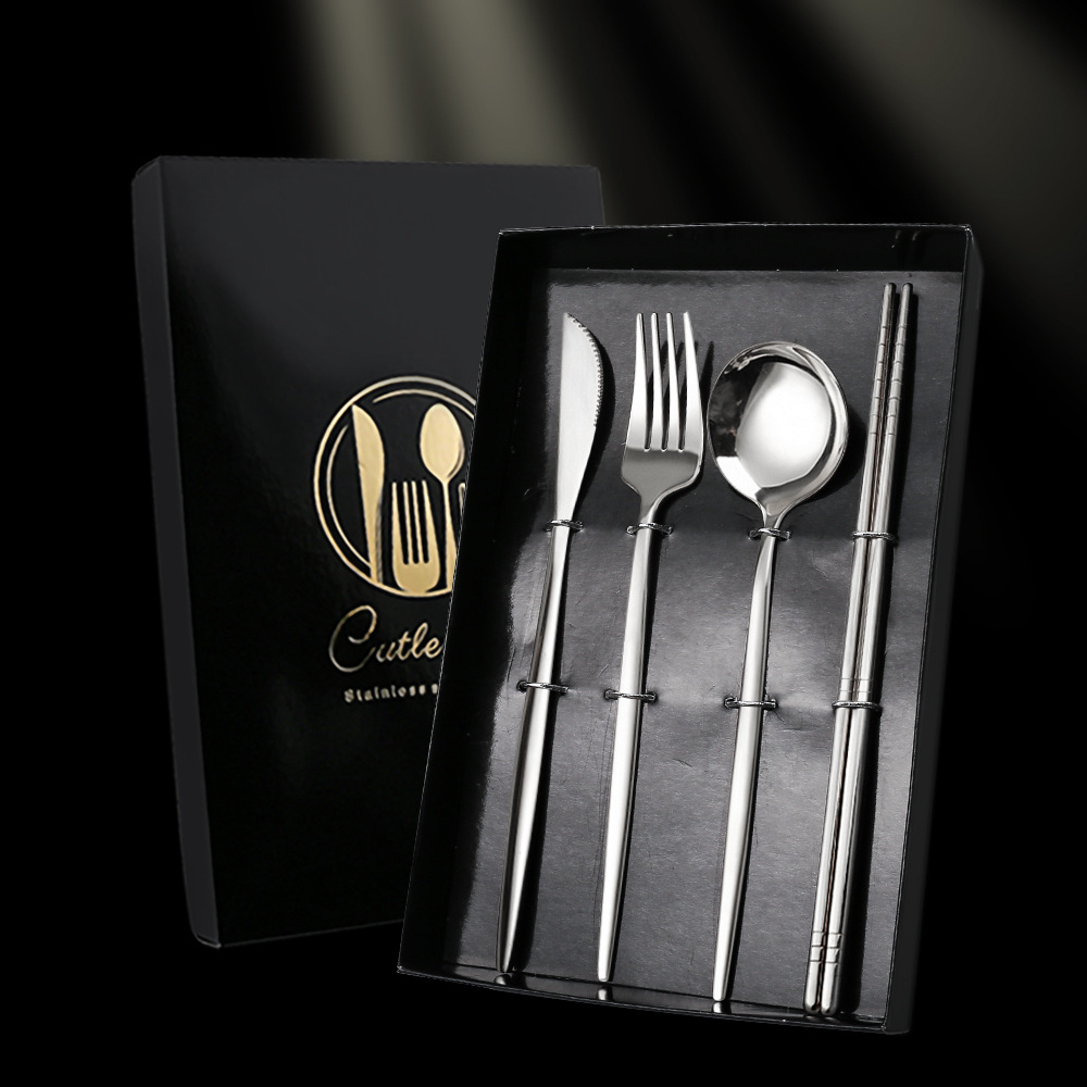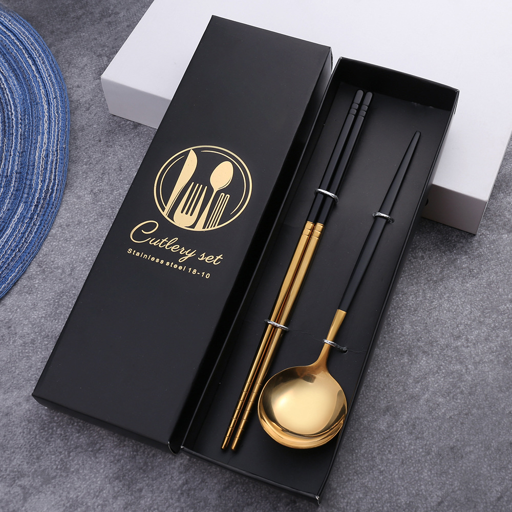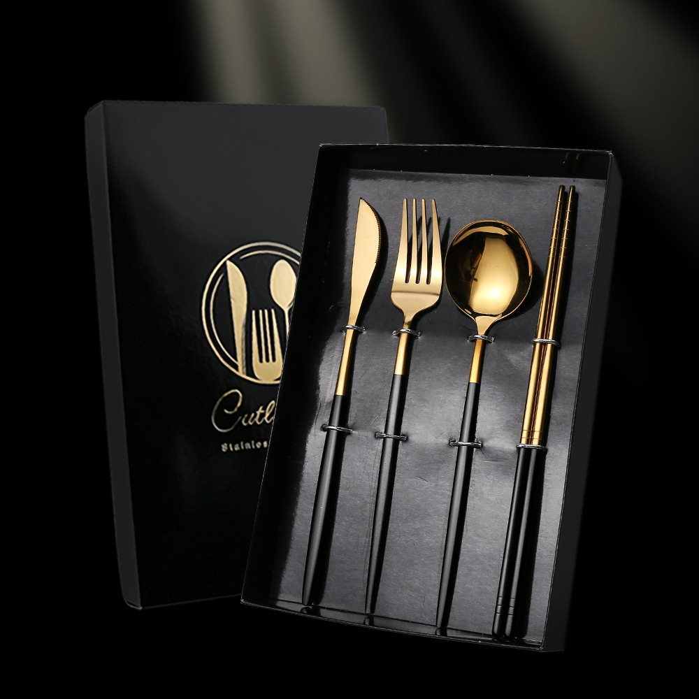 - Specifications: Black Gold Spoon, Fork, Chopsticks Color Box