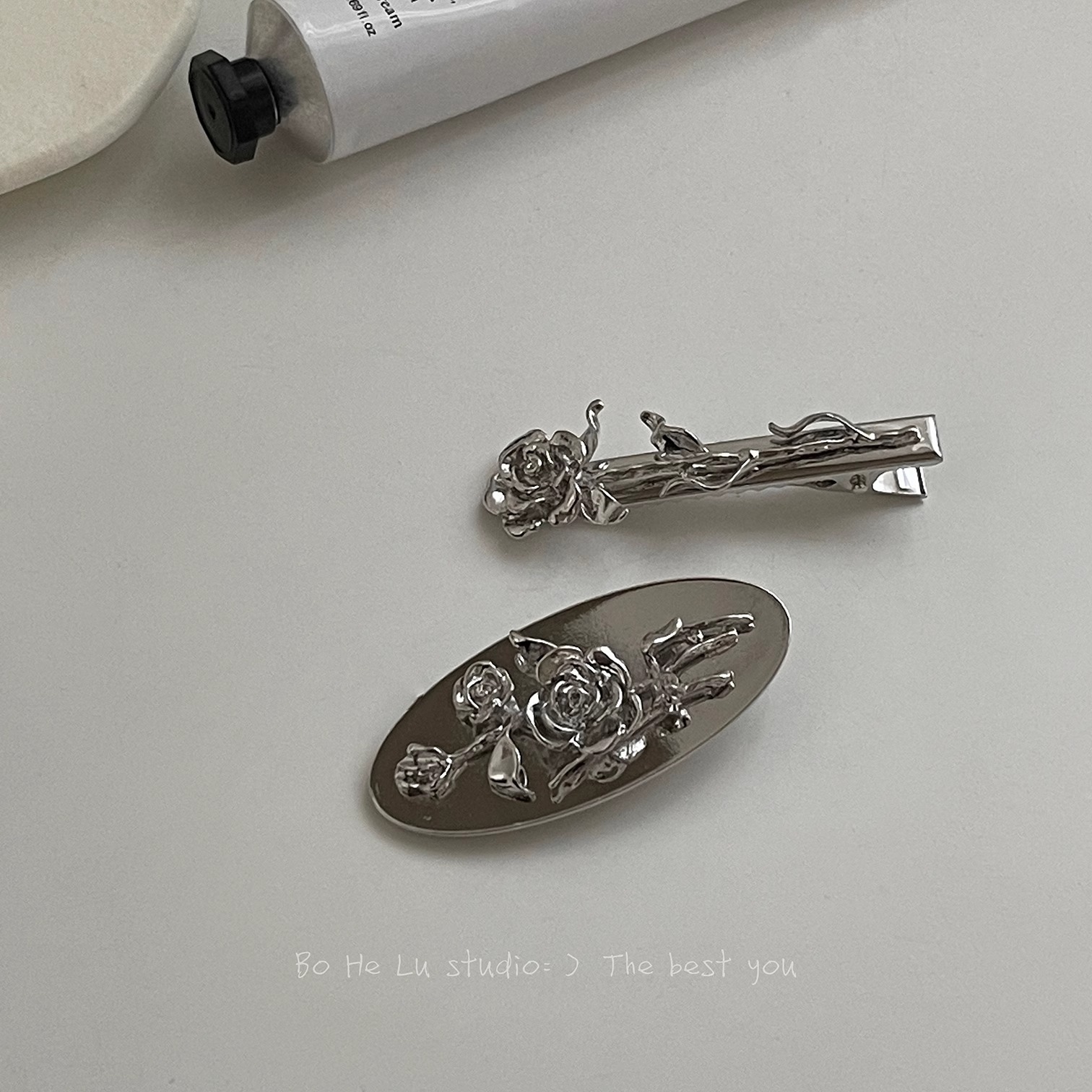 - 樣式:浮雕玫瑰髮夾