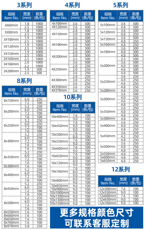 - Specification Model: White; 4*300 Non-standard 2.8mm Width 250 Pieces