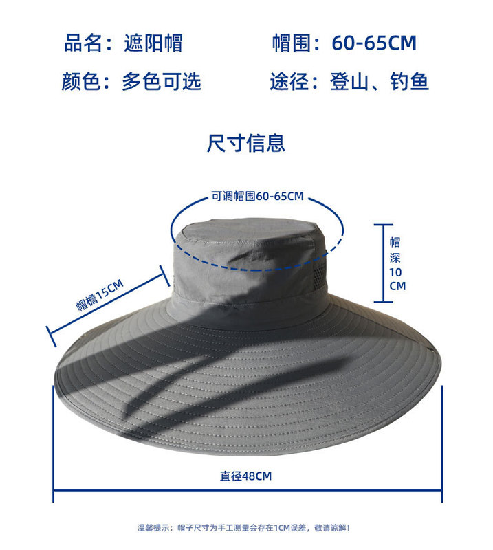 - 帽檐款式:超大檐