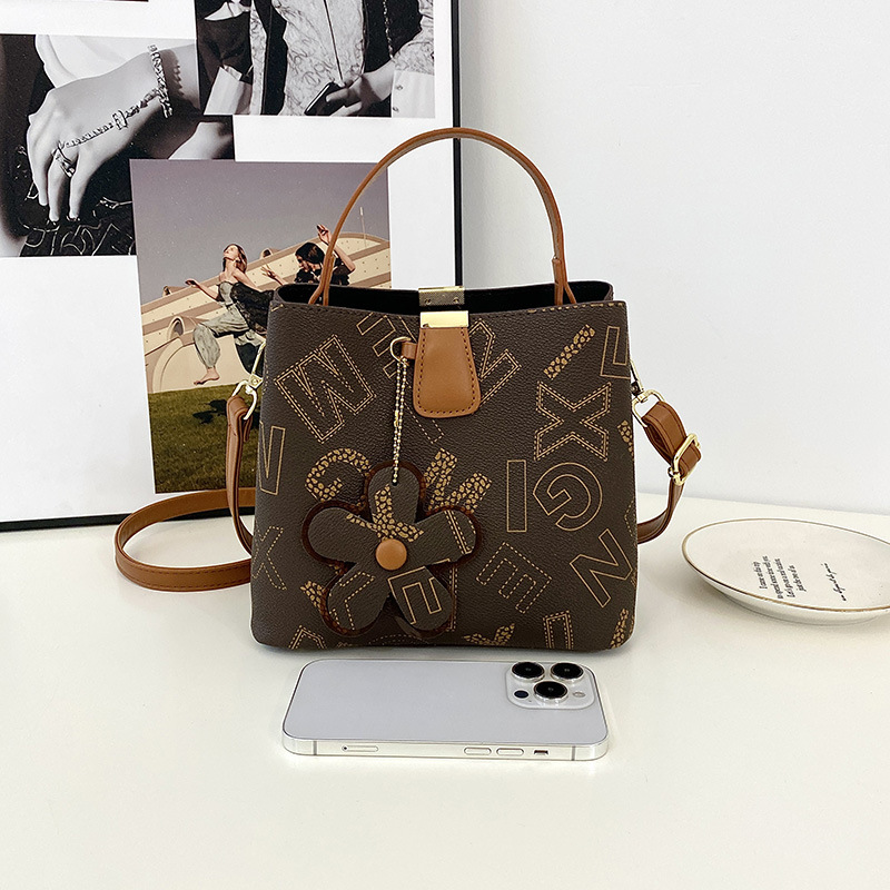 - 2: Foreign Trade Women's Bag 2024 New欧美 Fashion Bucket Bag Retro Printed Handbag Versatile Large Capacity Single Shoulder Bag