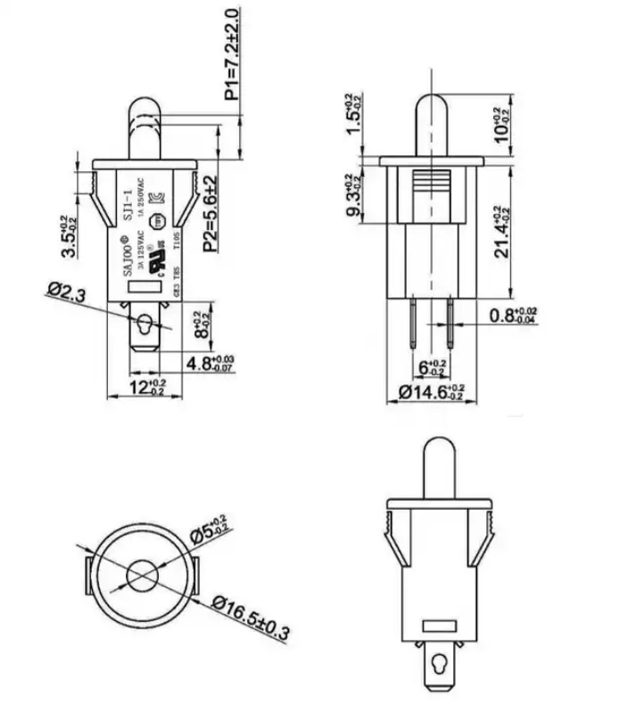 - Height: Black L=16mm Normally Open