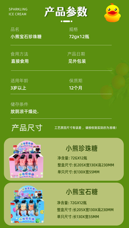 - 包裝規格:72克*12瓶小熊珍珠