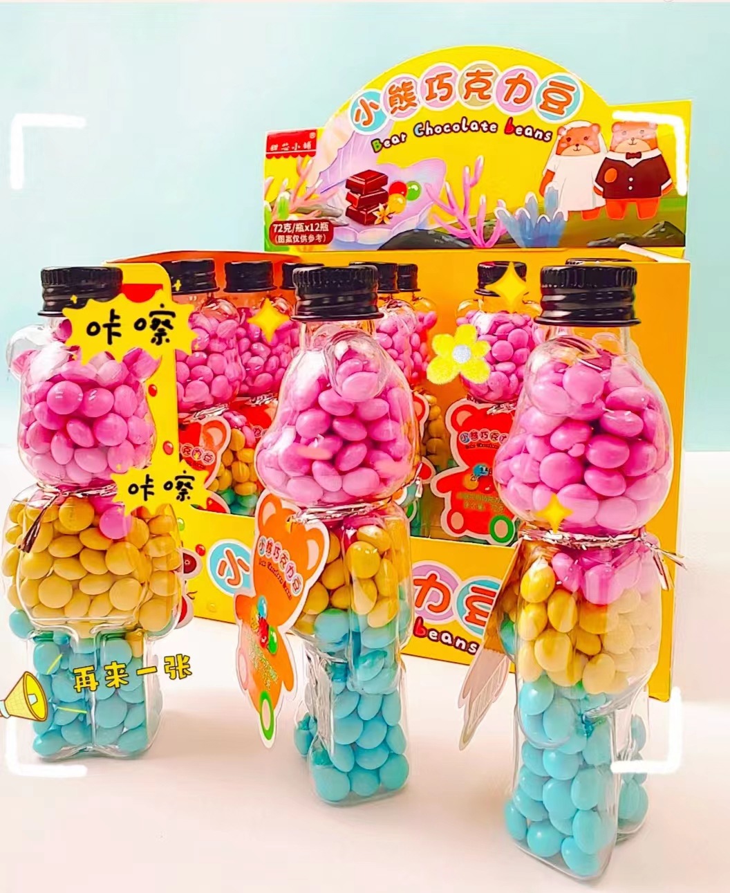 - 包裝規格:72克*12瓶小熊巧克力豆
