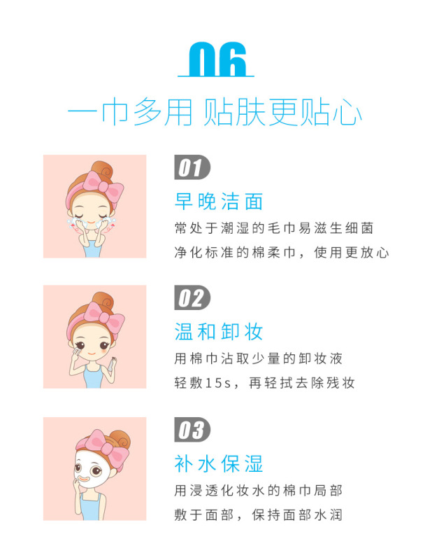 - 功能:卸妝,潔面,洗臉,擦拭