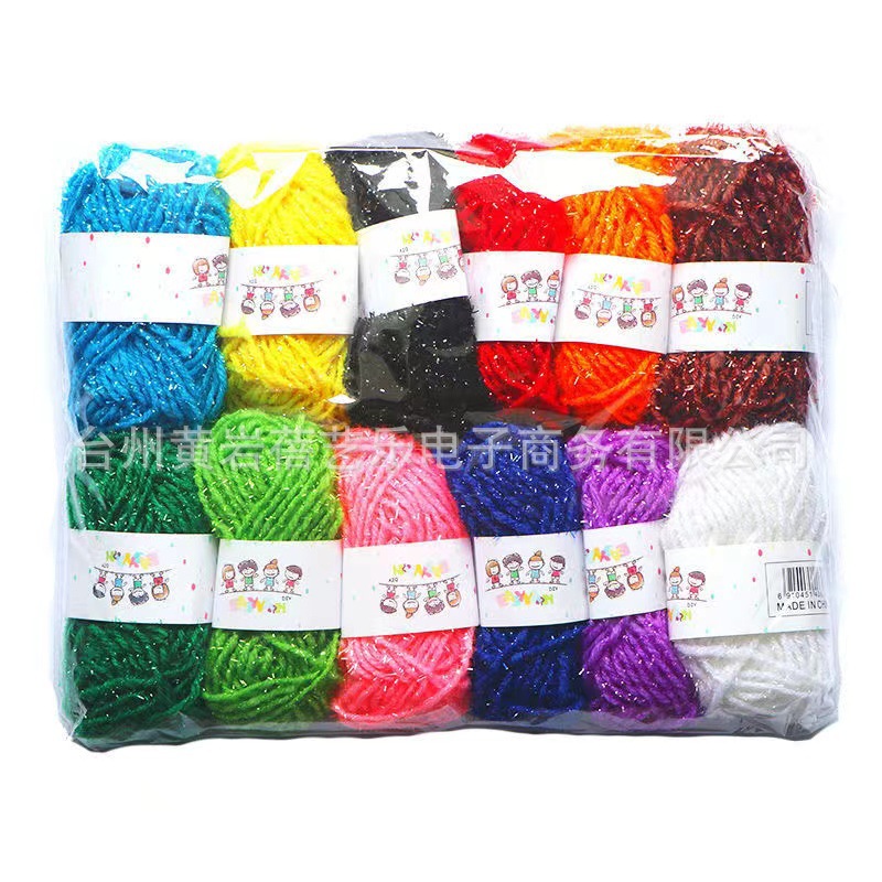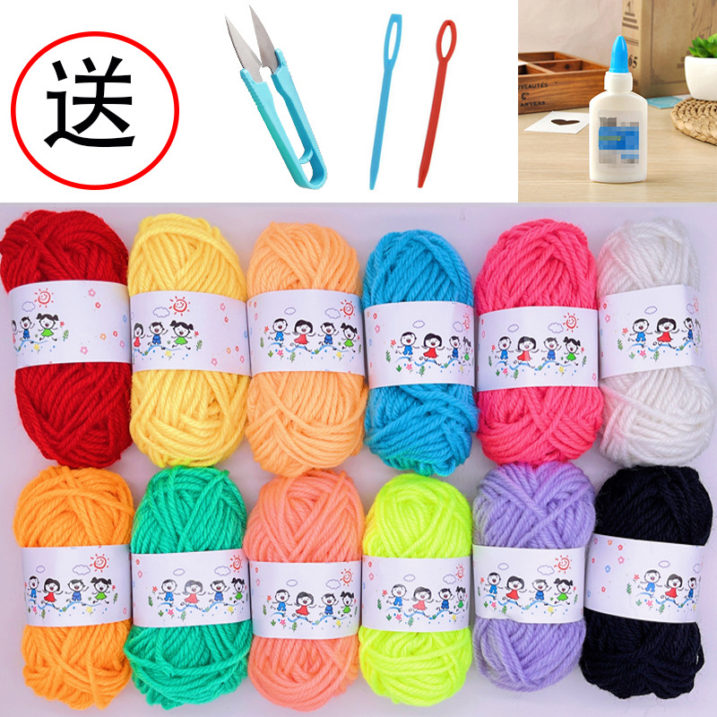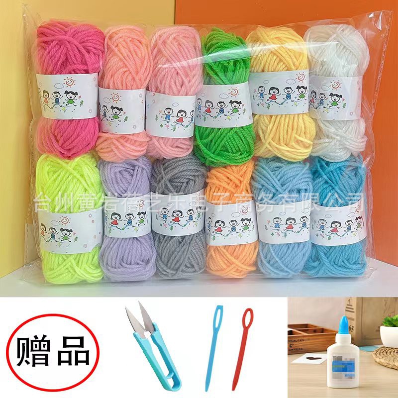- Specification Model: 12-Color Gold-Thread Wool Yarn (+ Glue + Scissors + Needle)