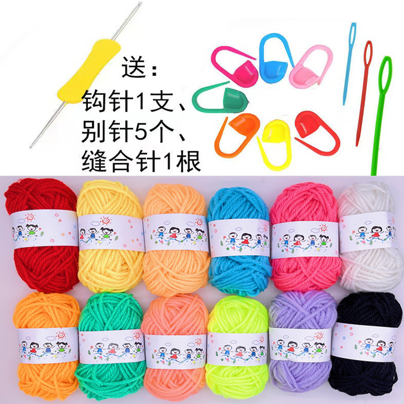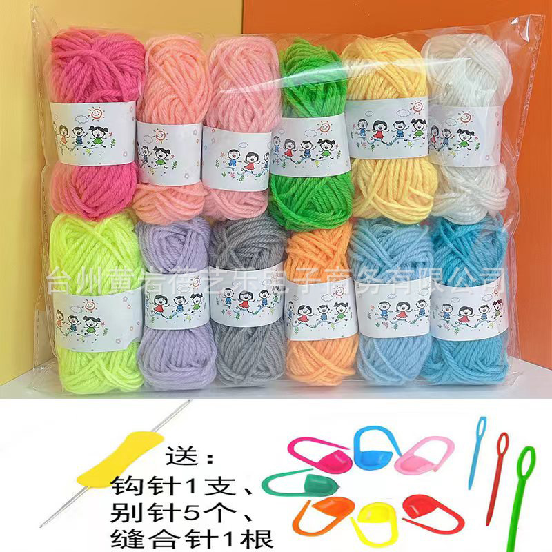 - Specification Model: 12-Color Multicolored Wool Yarn + Crochet Hook + Marker Pin