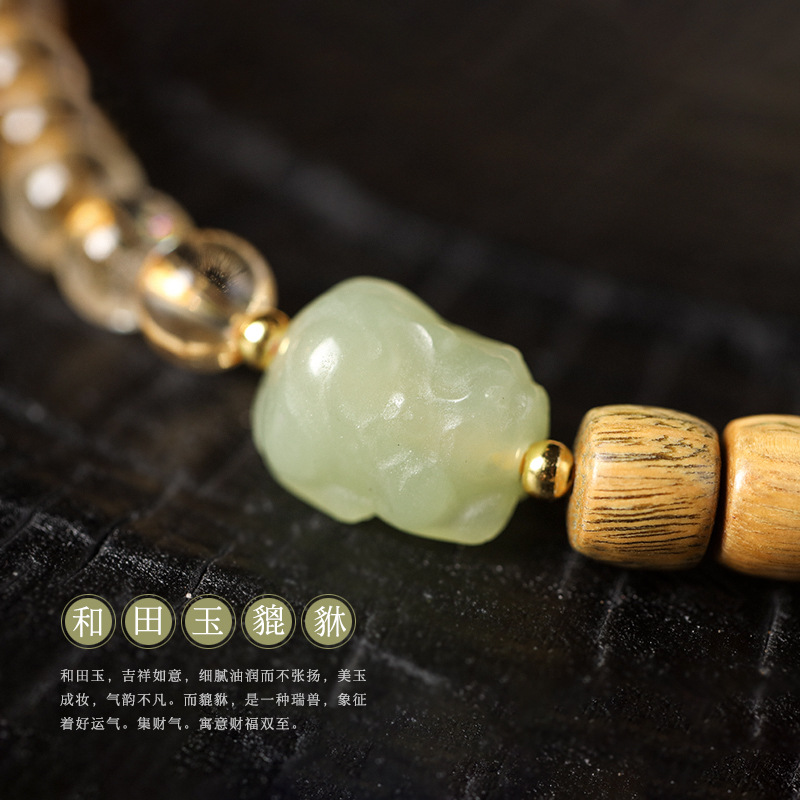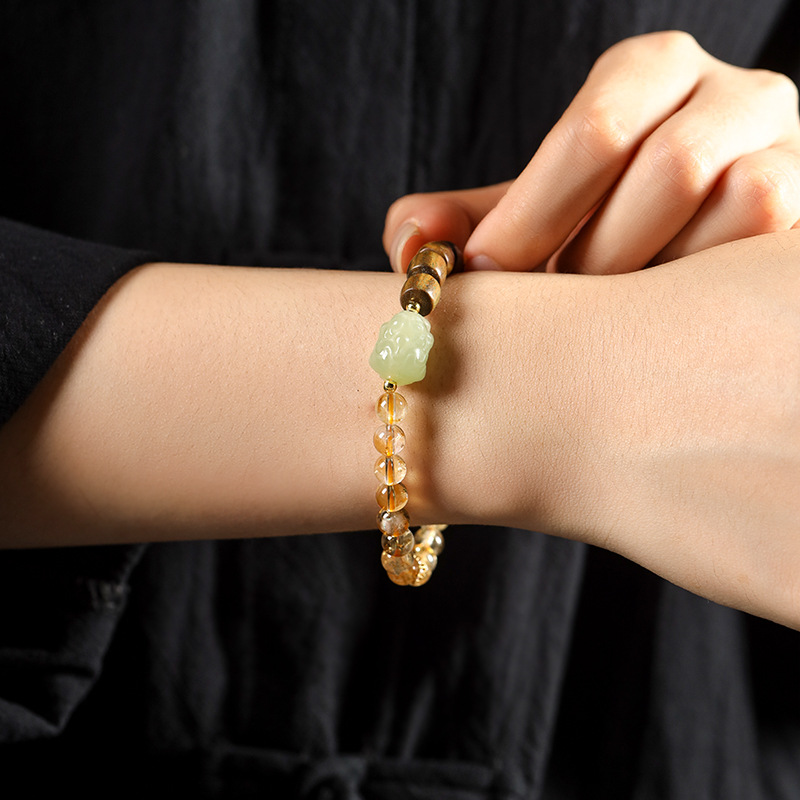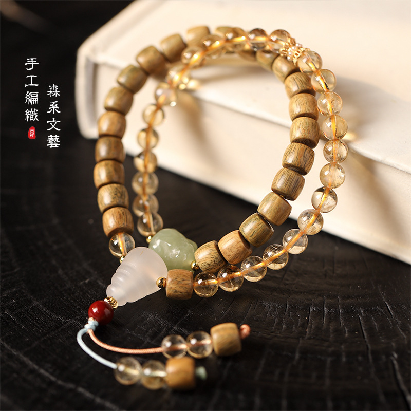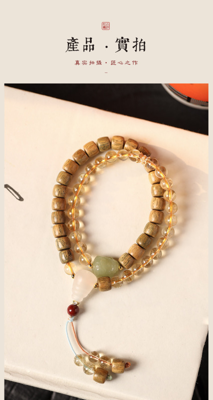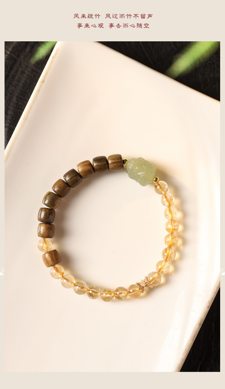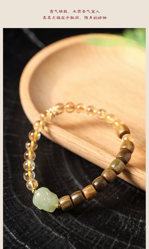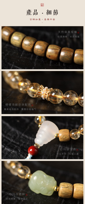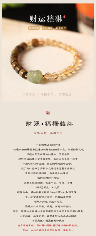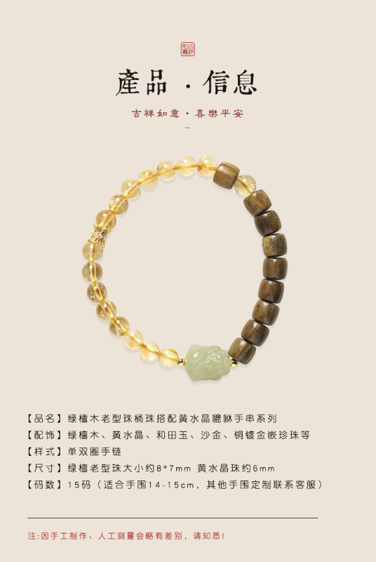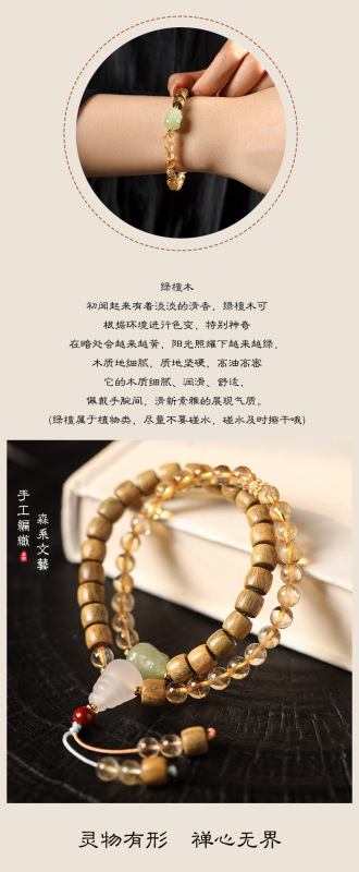 - 材質:黃水晶/綠檀木