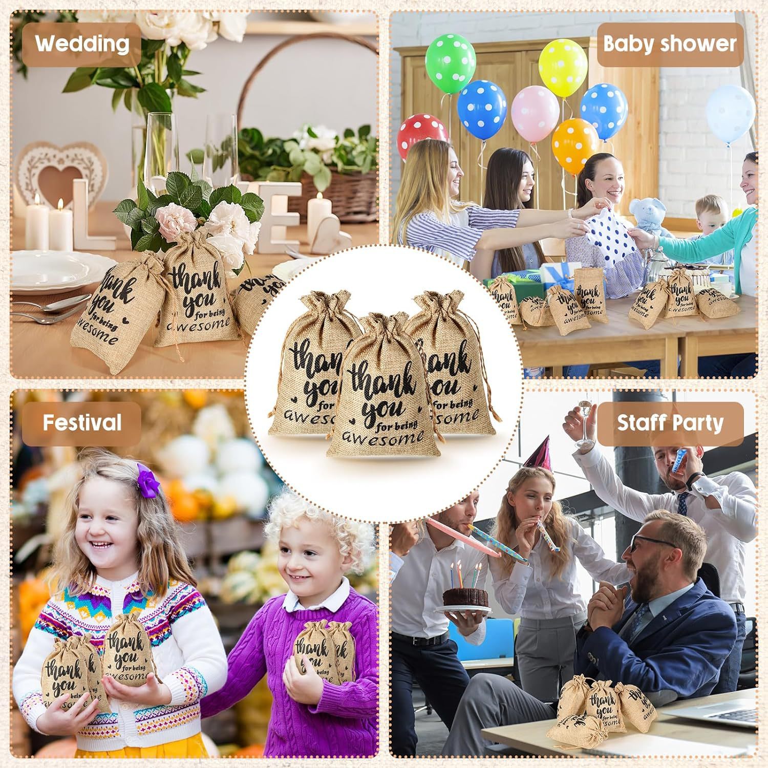- 規格型號:13x18cmthankyou禮物袋;原麻色;仿麻布袋
