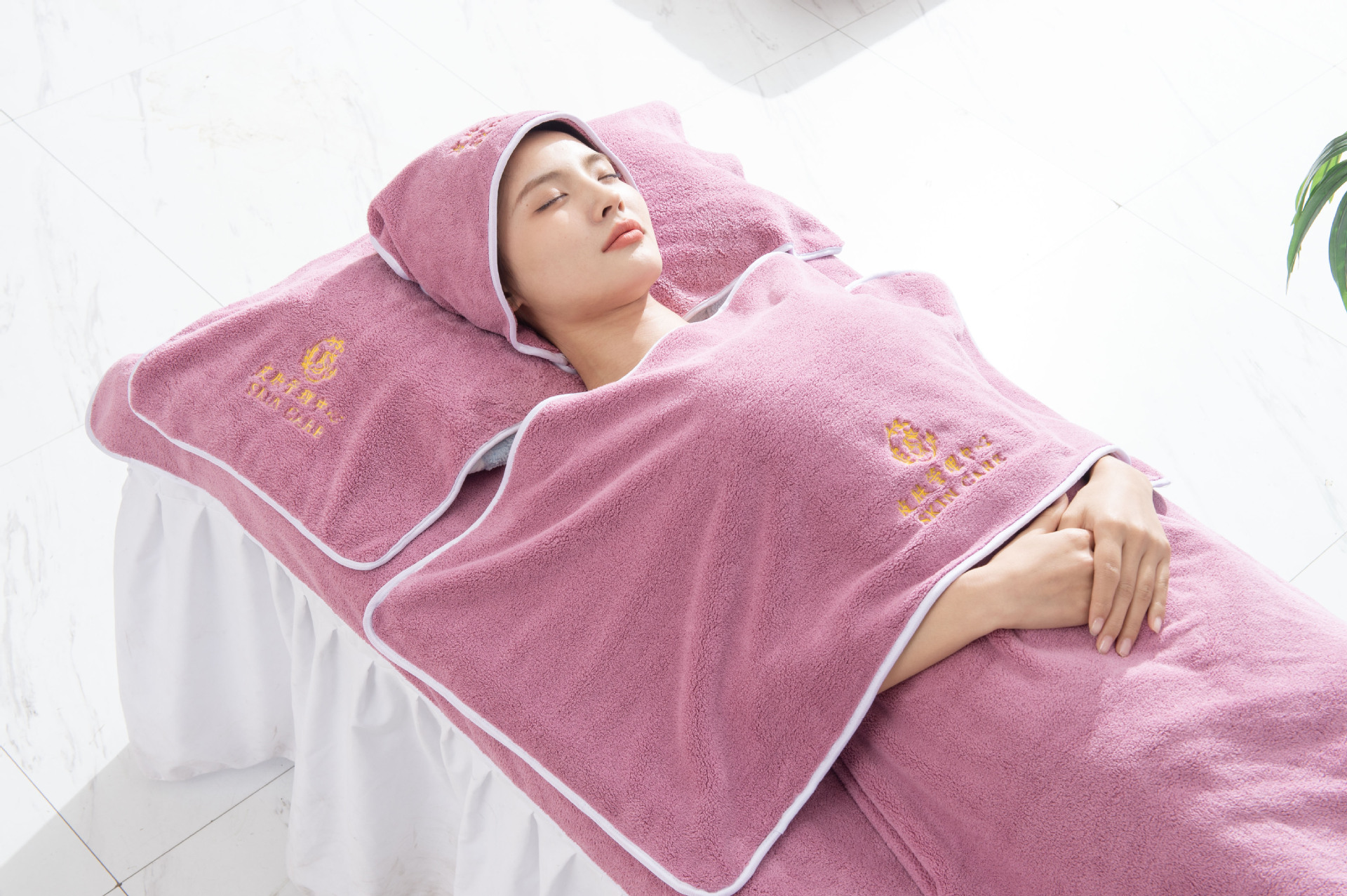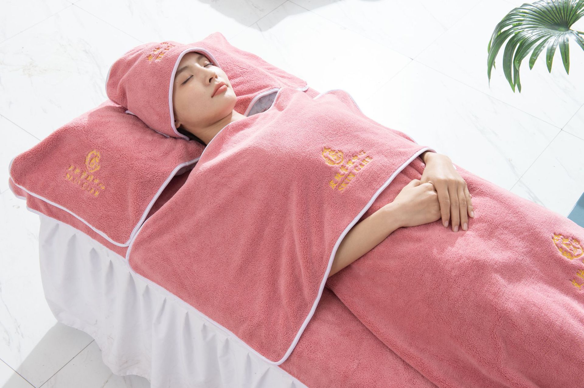- 規格(長*寬cm):五件套【包頭巾+枕巾+胸前巾+鋪床巾+浴裙】