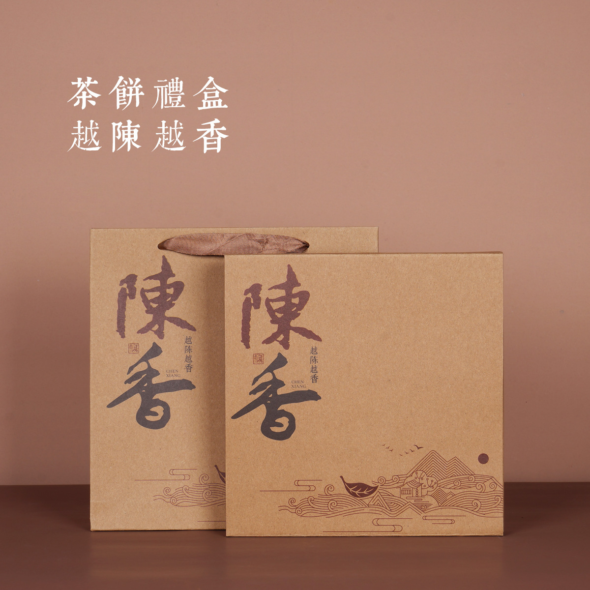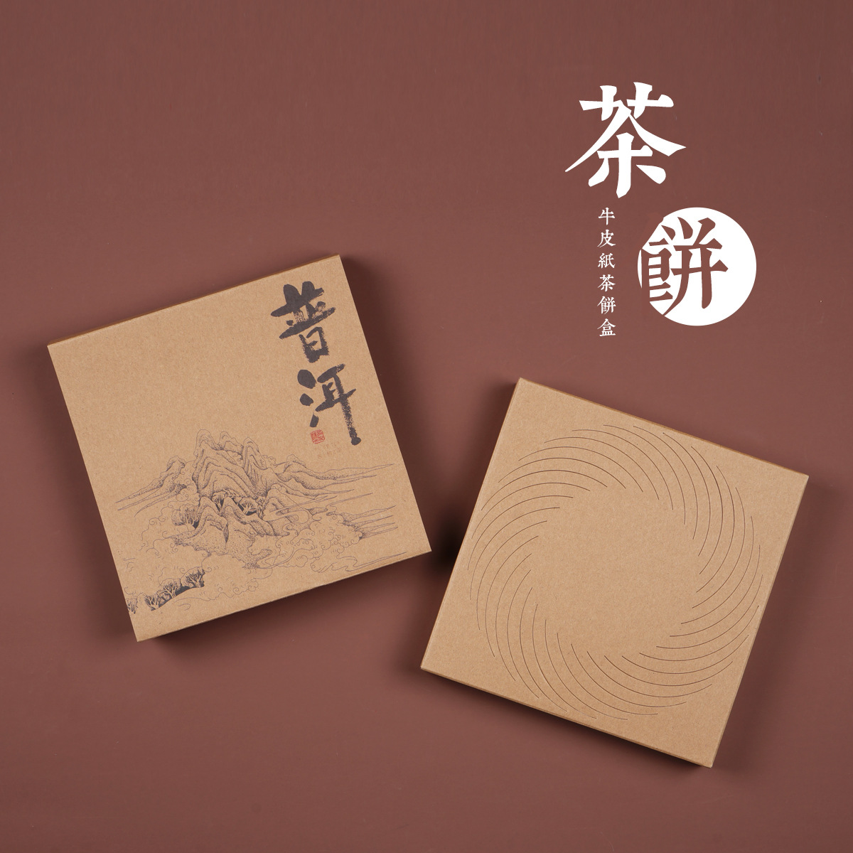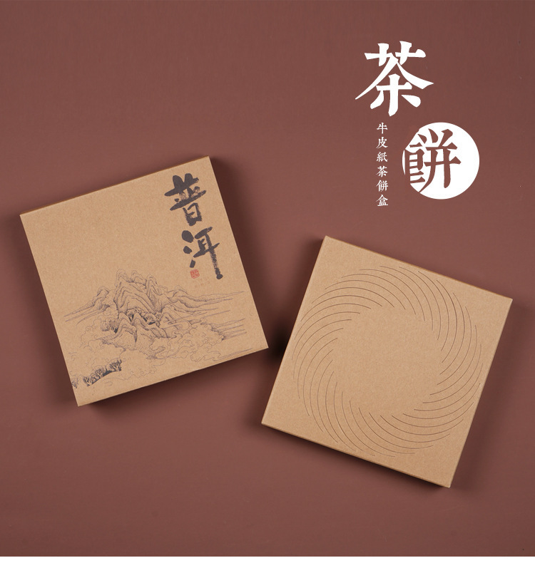 - Specification:牛皮纸茶饼盒普洱(山水款)