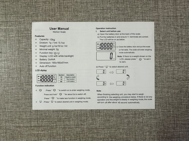 - Weighing Range: 15kg-1g