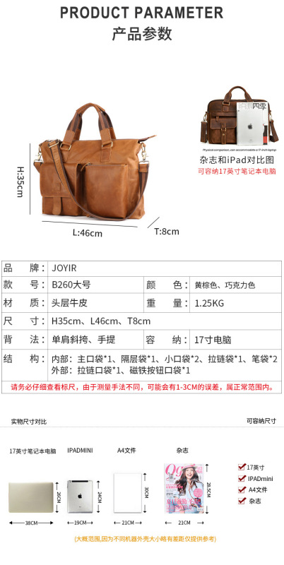 - Leather Characteristics: Top-Grain牛皮