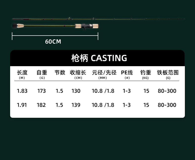 - Rod Action: Stiff Casting