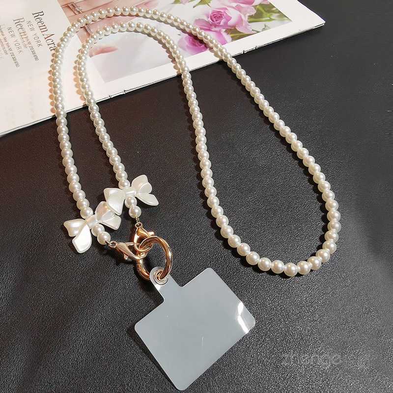 - 規格支持圖片上傳:斜挎款【白色】手打蝴蝶結珍珠掛鏈+透明夾片+銀色圓扣